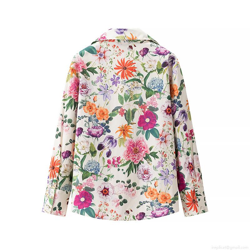 • Women's Long Sleeve Floral Print Shirt Elegant Turn-down Collar Single-breasted Polyester Blend Blouse for Casual Office Date Ladies Tops