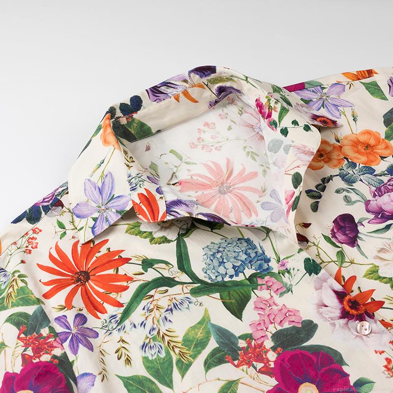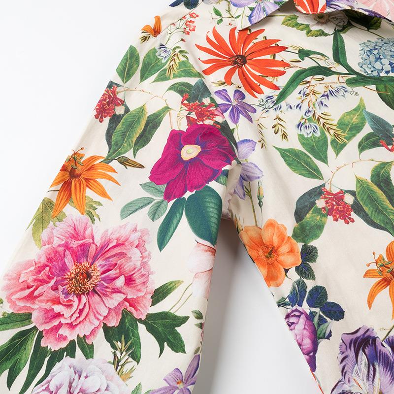 Flowers, Floral Print, Single-breasted, Pearl Buttons