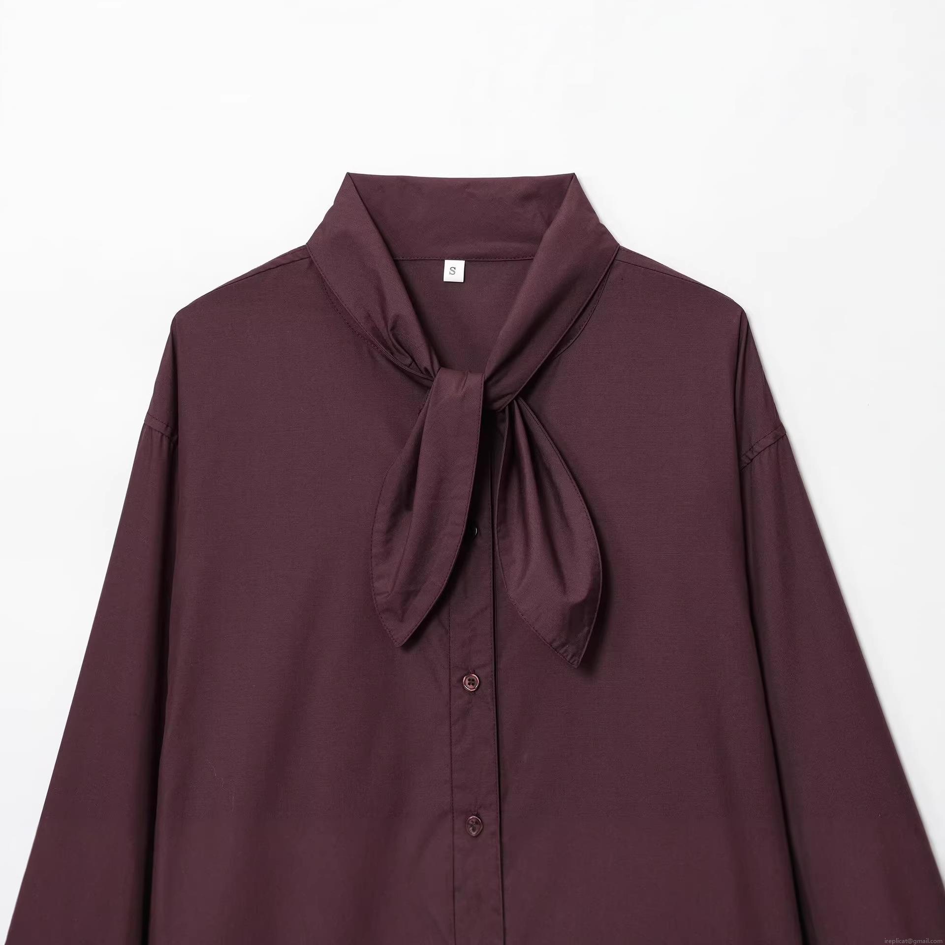 • Women's Long Sleeve Polyester Shirt Elegant Bow Tie Neck Button Down Blouse For Office Daily Party European Streetwear Solid Tops