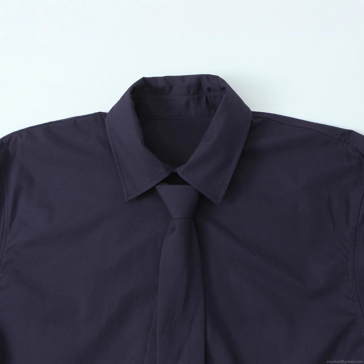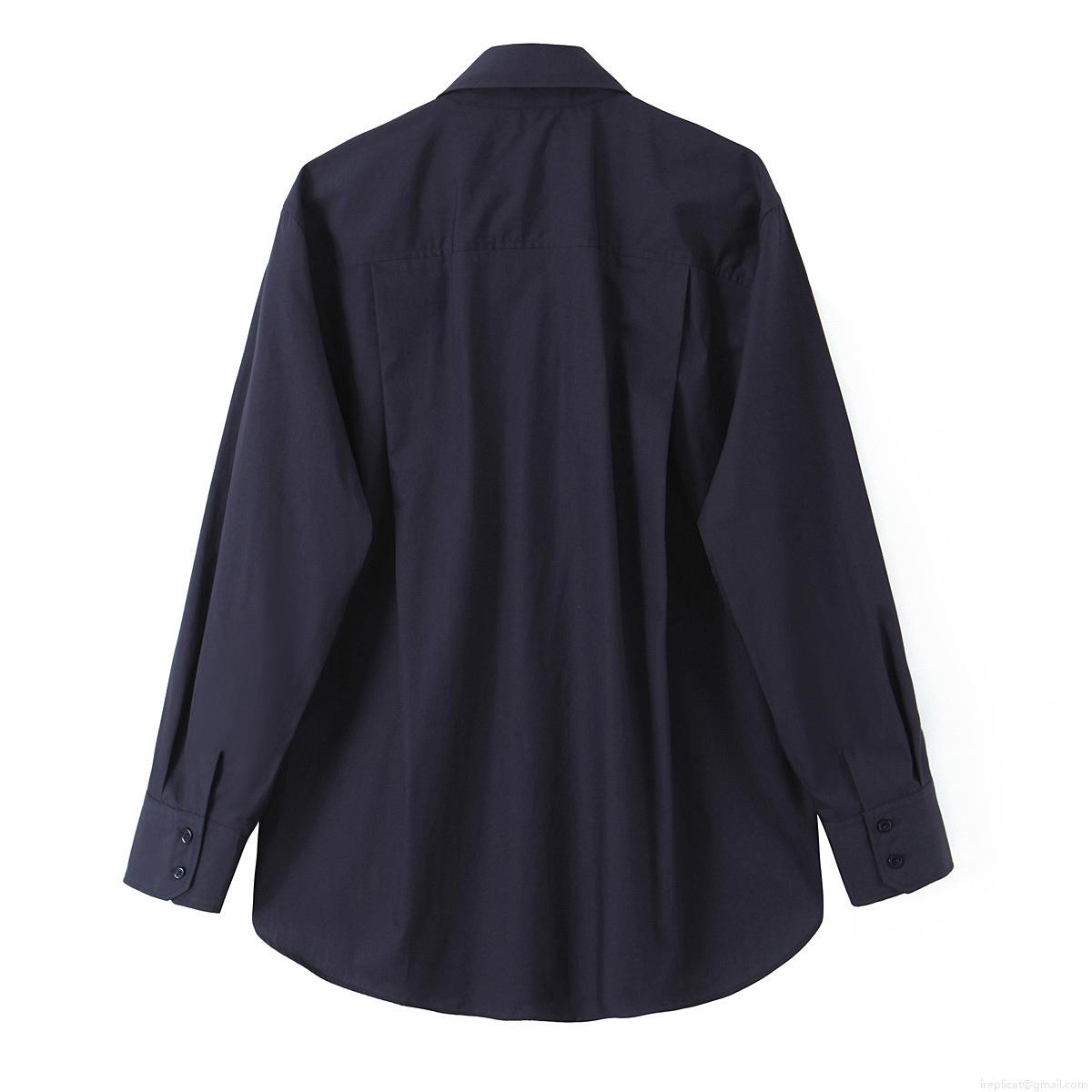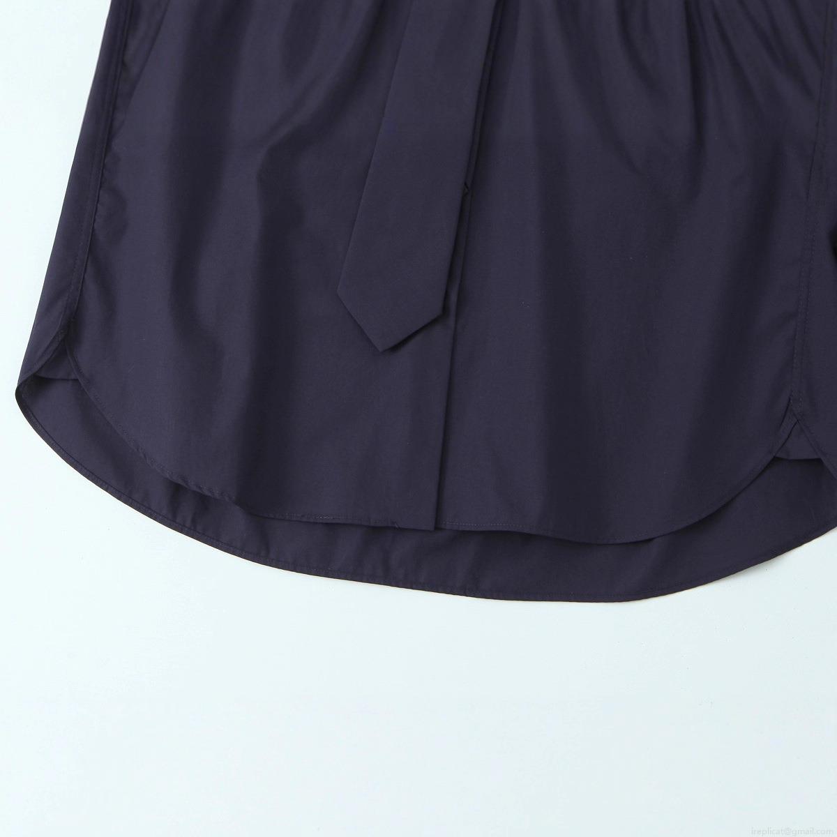 Women's Long Sleeve Poplin Shirt With Tie European Streetwear Polyester Button Down Office Blouse Solid Navy Blue Fall Winter