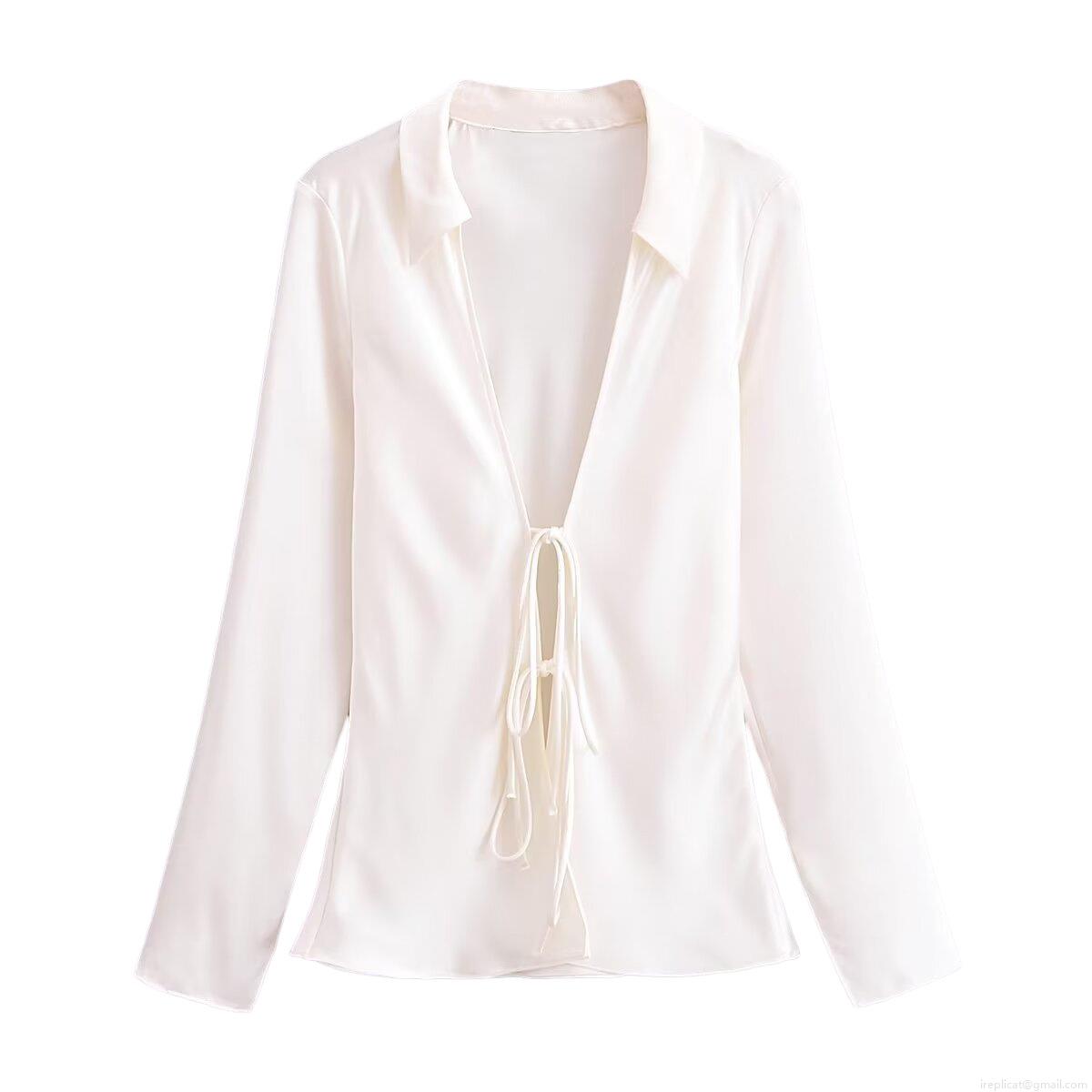 • Women's Long Sleeve Satin Blouse Lapel Tie Front Shirt Elegant Solid Leopard Print Blouses Sexy Streetwear Casual Autumn Tops