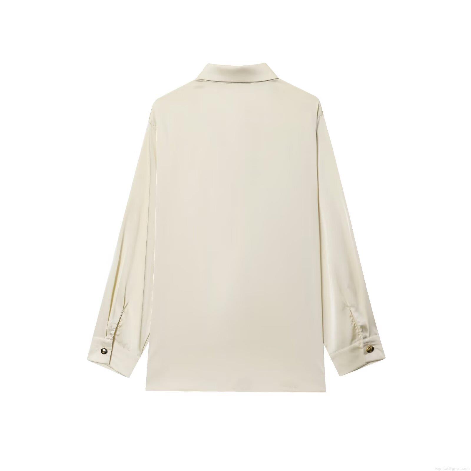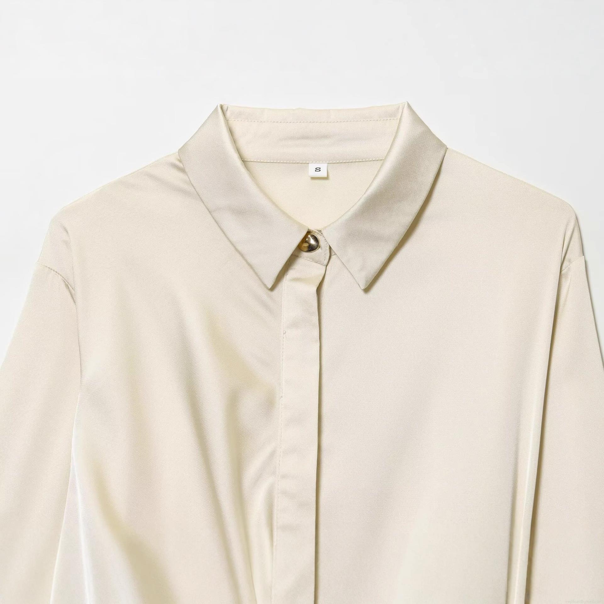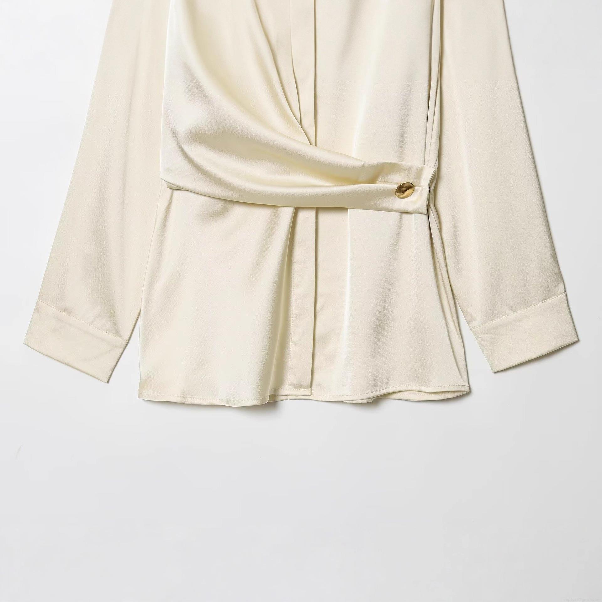 • Women's Long Sleeve Satin Shirt Elegant Side Twist Gold Button Blouse Glossy Silk-like Polyester Office Daily Casual Chic Solid Color Fashionable Tops for Women