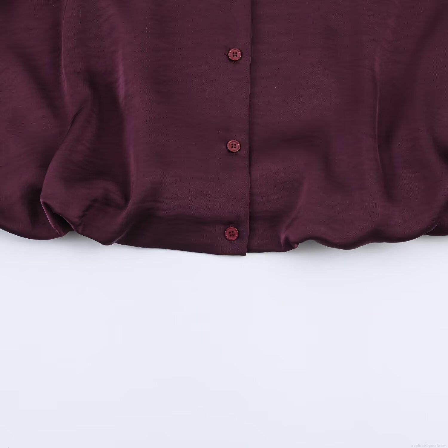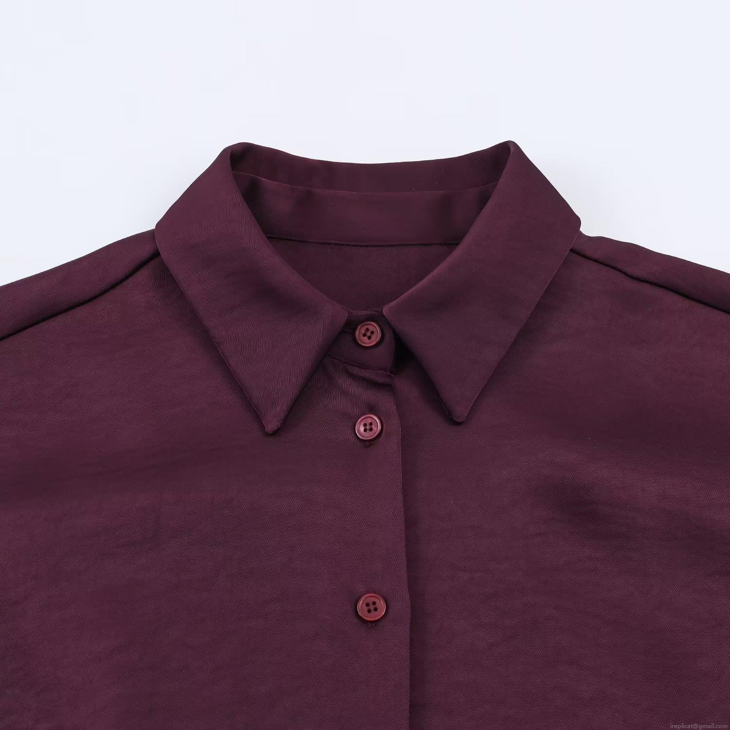 • Women's Long Sleeve Satin Shirt Lapel Single Breasted Crop Top Western Style Elegant Silky Blouse for Daily Streetwear Party Office
