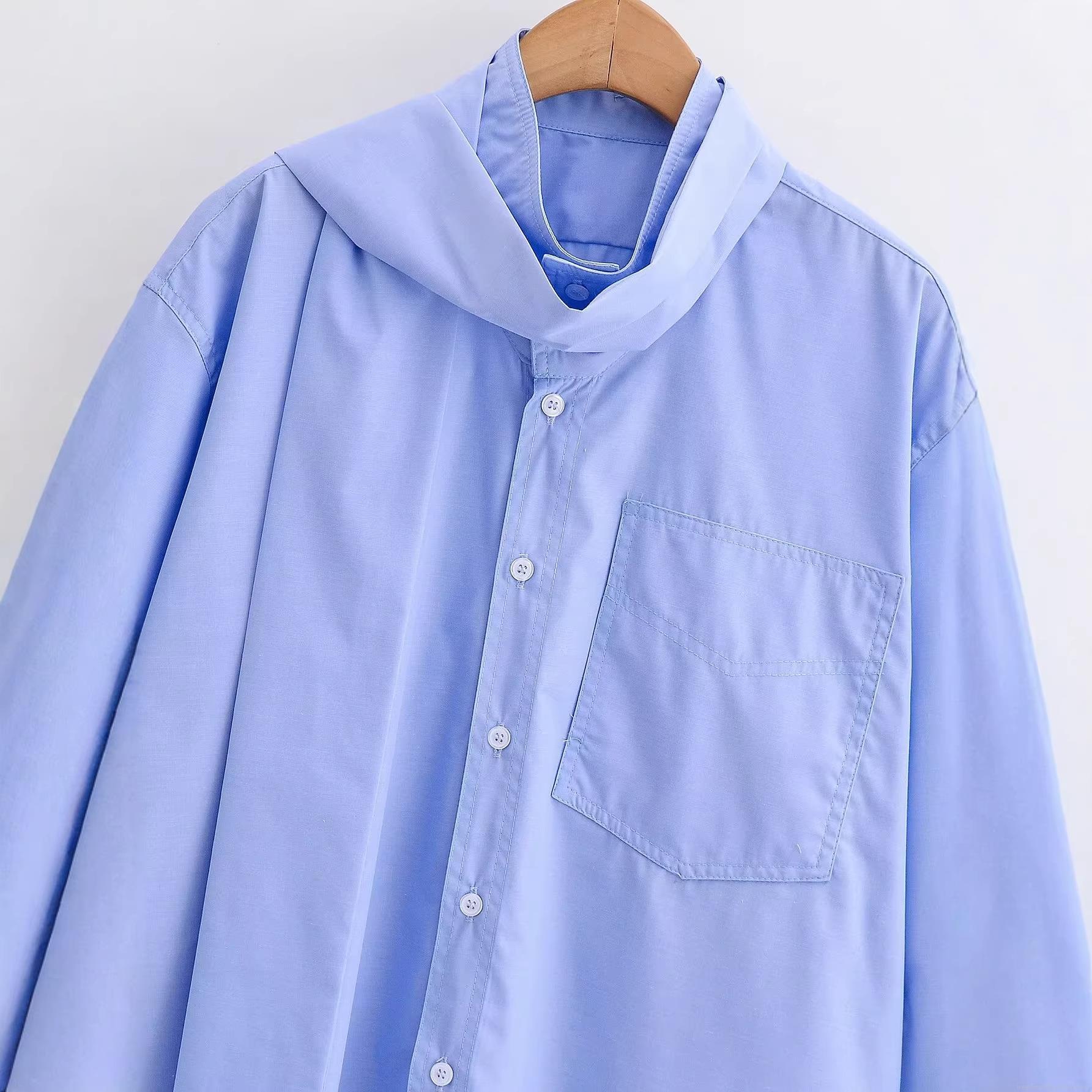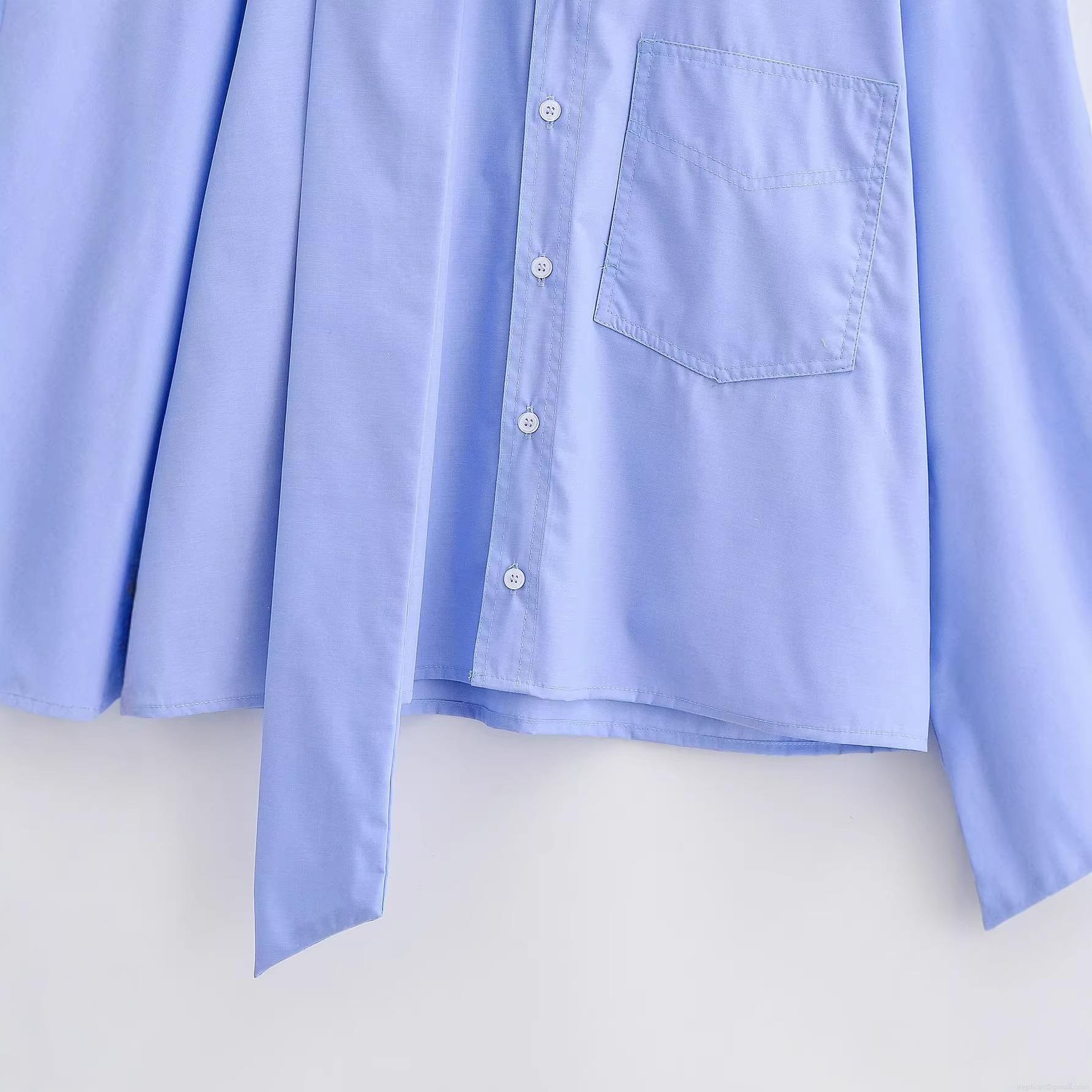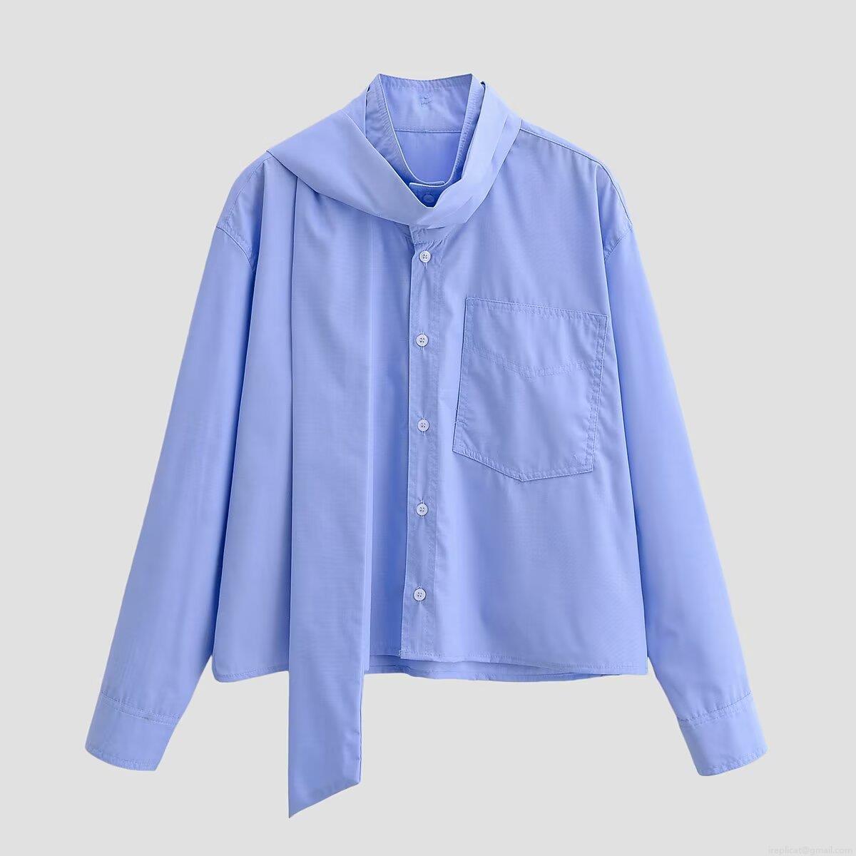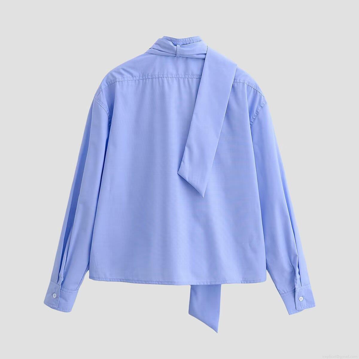 • Women's Long Sleeve Shirt 100% Polyester Iron-free Scarf Tie Neck Blouse With Front Pocket Solid Color Sky Blue Elegant Tops For Office Daily Wear Casual Commute