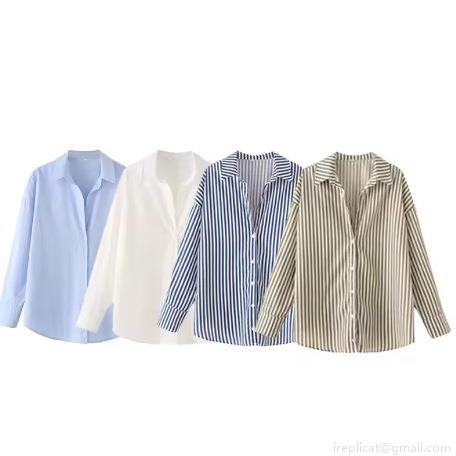 • Women's Long Sleeve Shirt Button Down Blouse Polyester Blend Loose Fit Striped Solid Color Tops For Office Work Daily Wear Casual Streetwear Fashion Turn Down Collar Women's Blouses