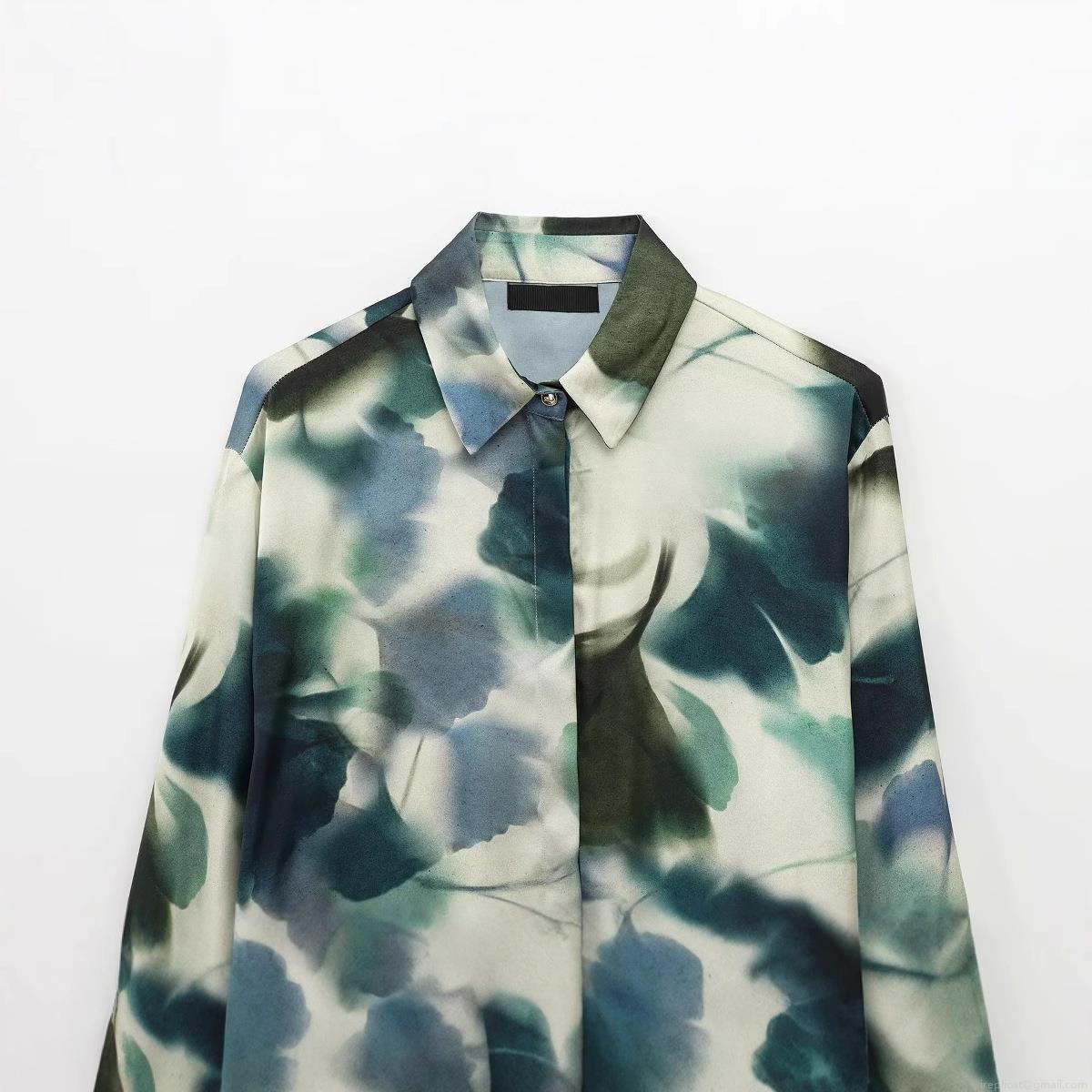 • Women's Long Sleeve Shirt Elegant Satin Polyester Abstract Floral Leaf Print Socialite Chic Lapel Button Down Blouse For Office Casual Party Ladies Trendy Tops