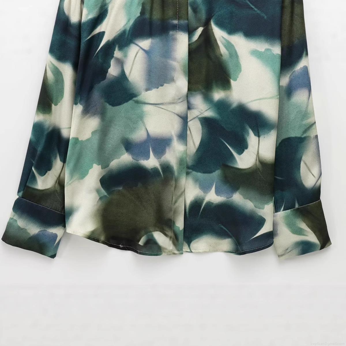 Satin Texture, Abstract Print, Artistic Blending, Shell-textured Buttons, Abstract Plant Leaves