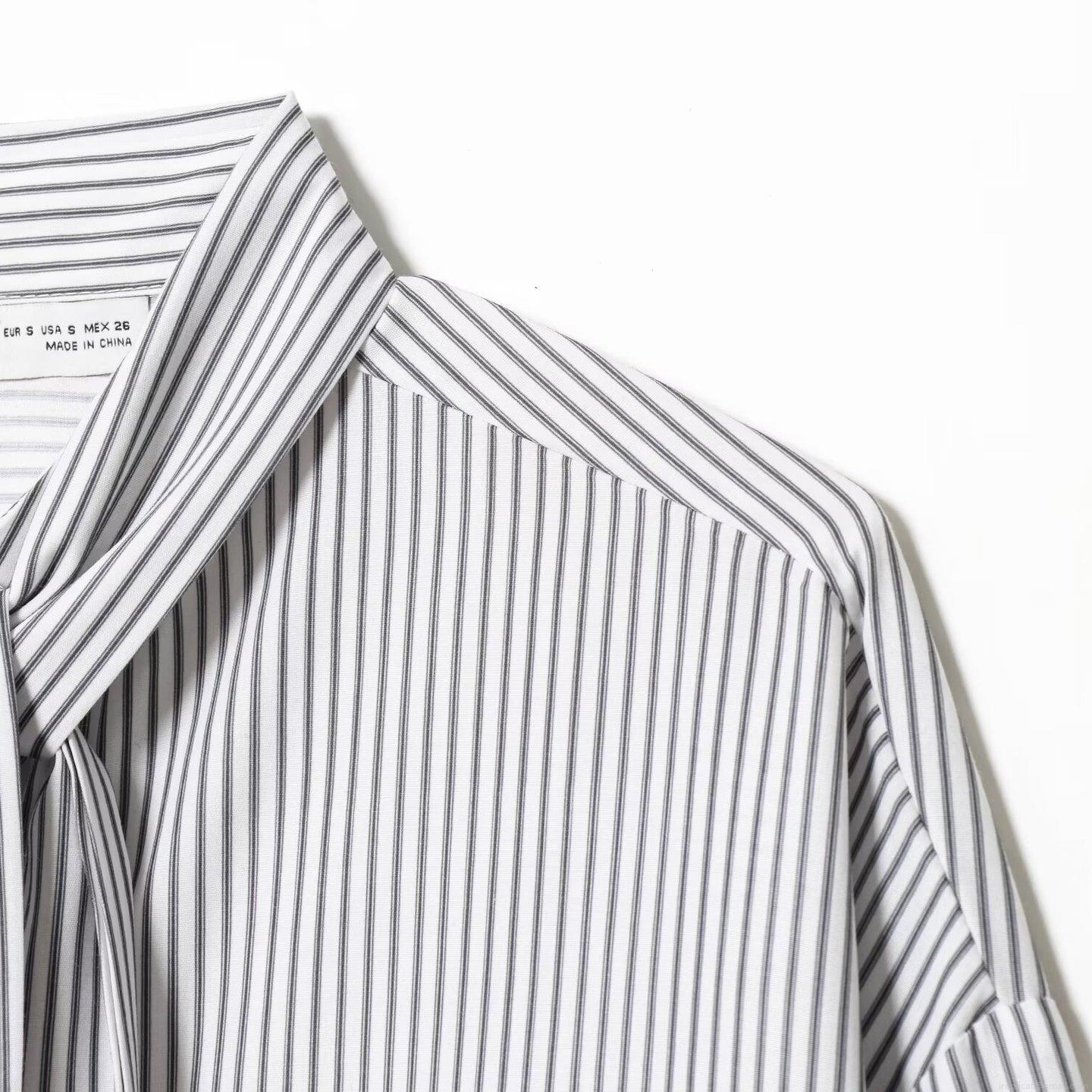 • Women's Long Sleeve Striped Blouse With Tie Neck Scarf Collar Loose Fit Poplin Shirt Casual Office Commute Tops For Ladies Elegant Vertical Stripe Clothing