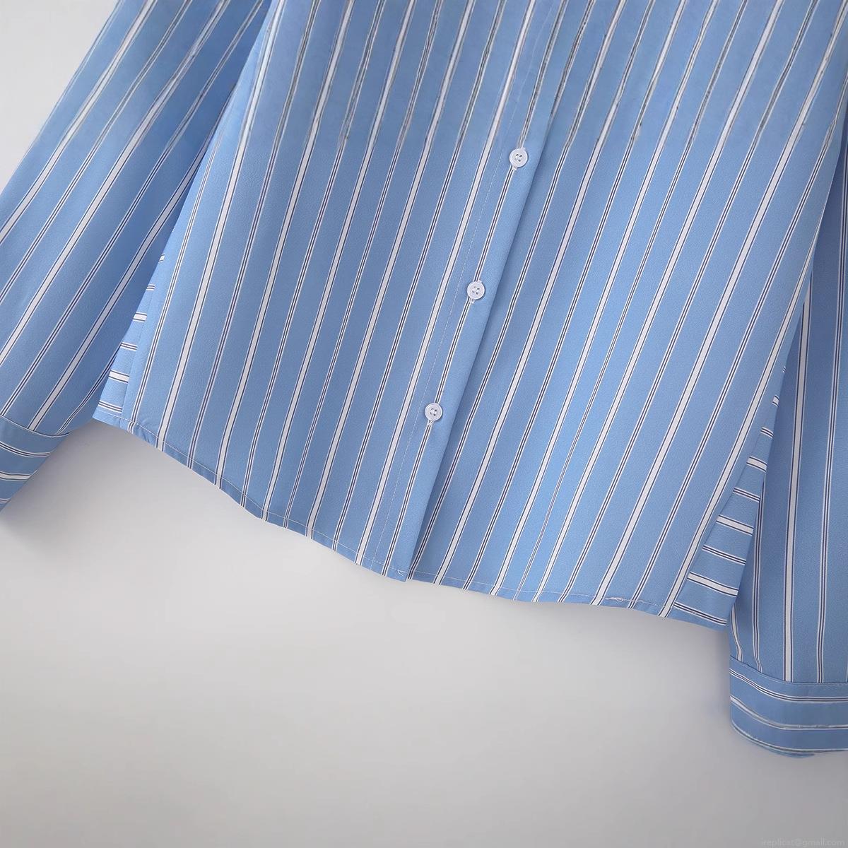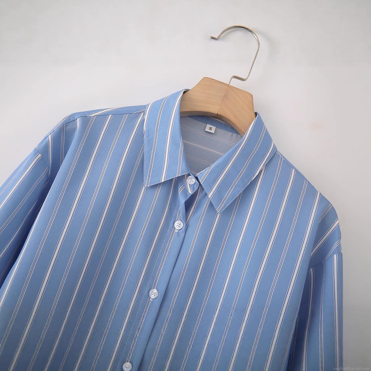 • Women's Long Sleeve Striped Poplin Cotton Shirt Classic Lapel Button Down Blouse For Office Daily Casual Lady Modern Spring Fashion Top