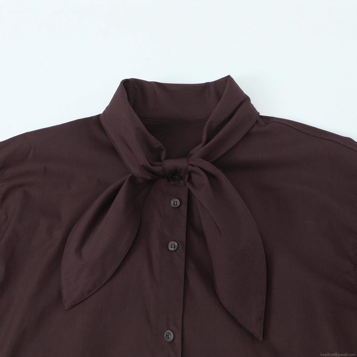 • Women's Long Sleeve Tie-Neck Blouse Elegant Solid Coffee Brown Polyester Pussy-Bow Shirt Top for Office Lady Fall Fashion