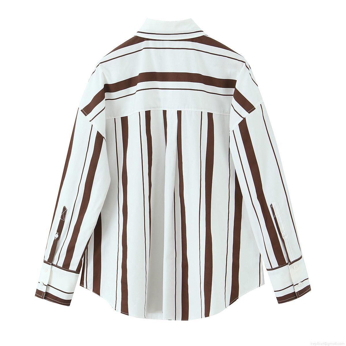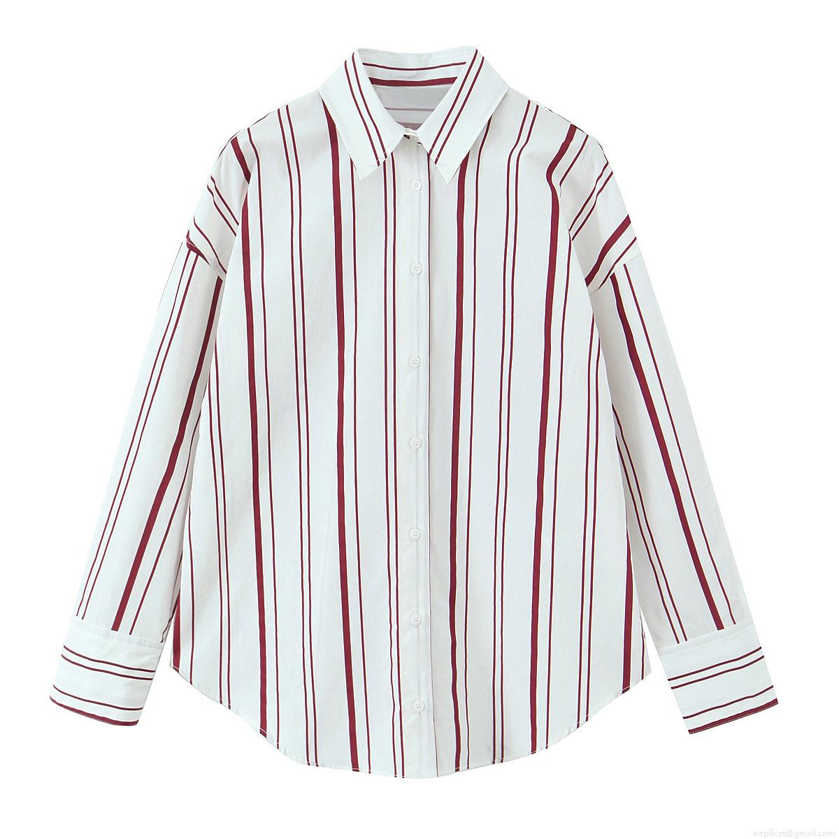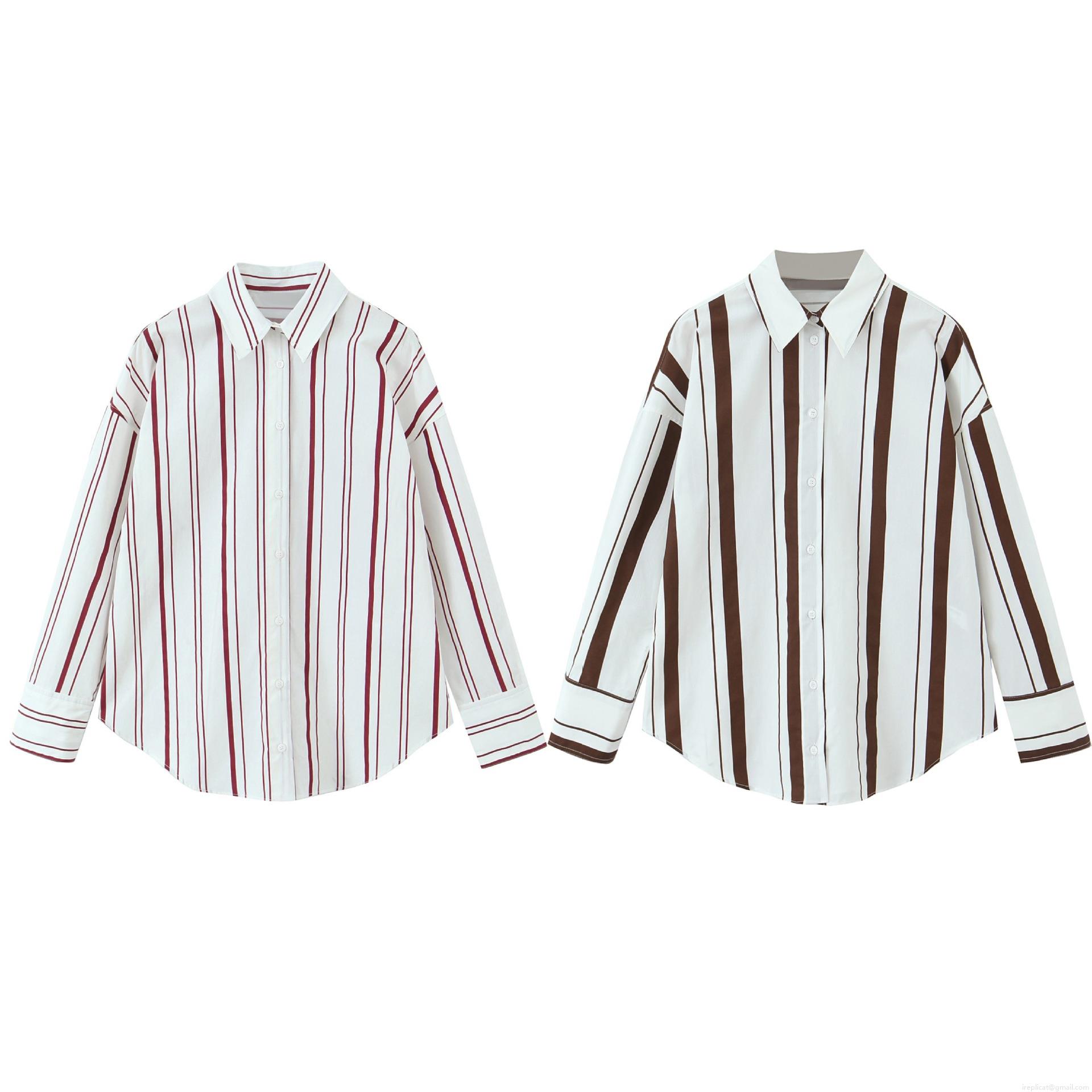 • Women's Long Sleeve Vertical Striped Poplin Shirt Button Down Blouse Casual Elegant Shirt Collar Tops For Women Streetwear Office
