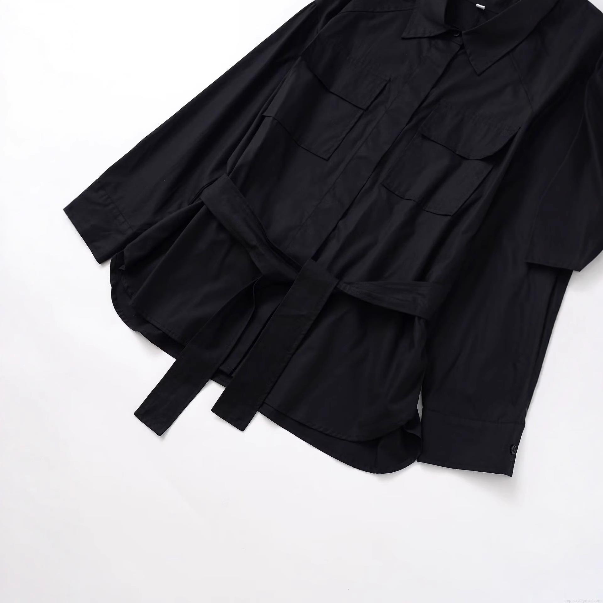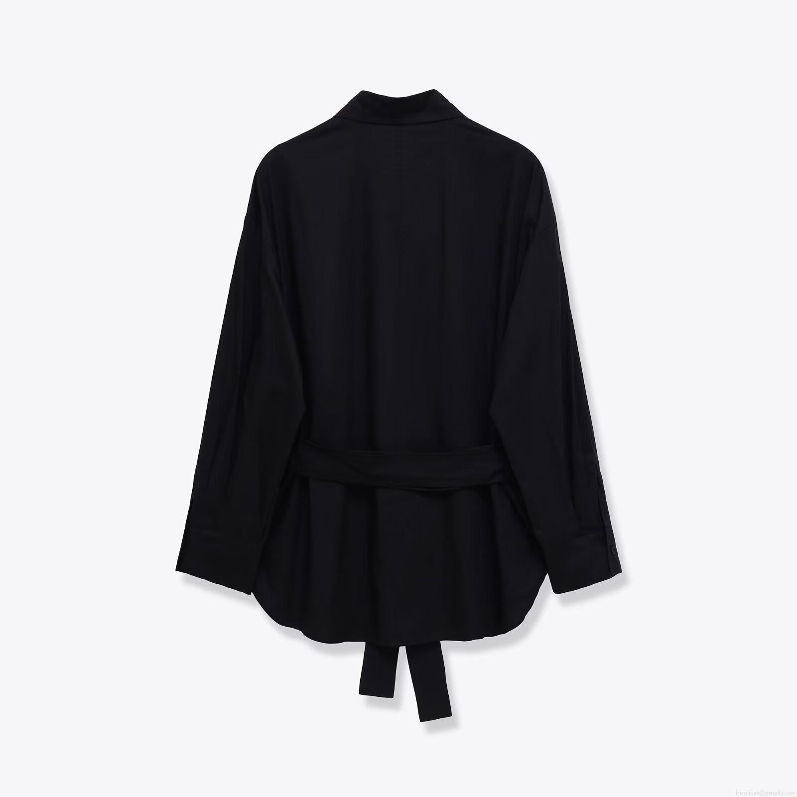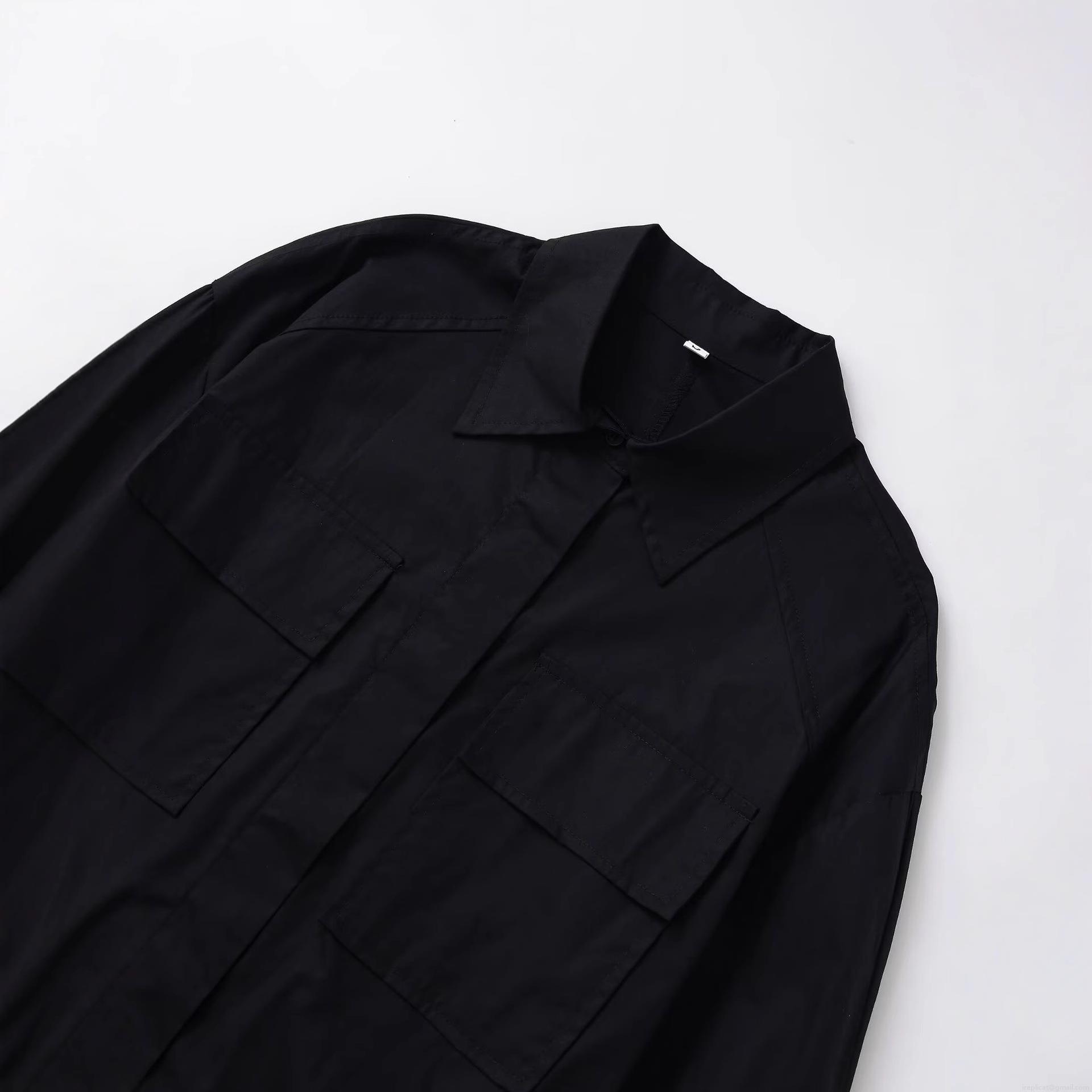 Women's Long Sleeve Workwear Shirt Solid Color Polyester Blouse With Double Pockets And Belt Casual Fashion Tops For Ladies