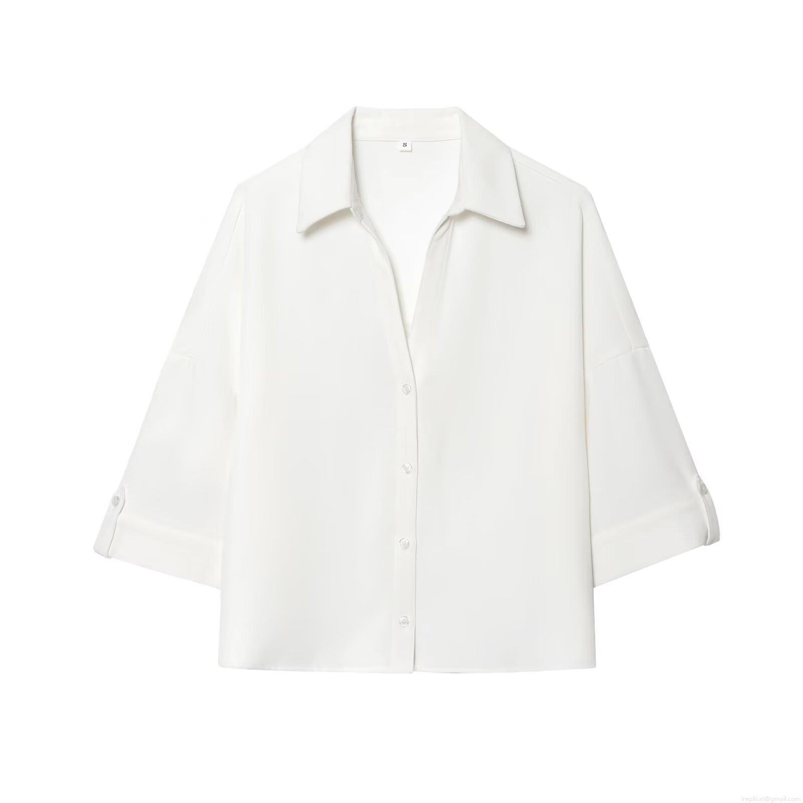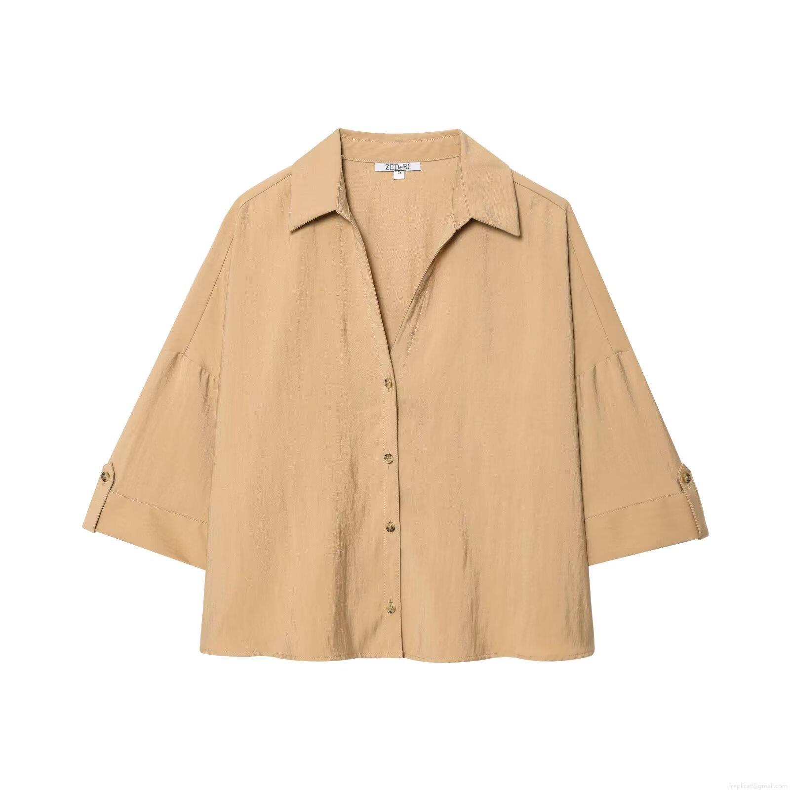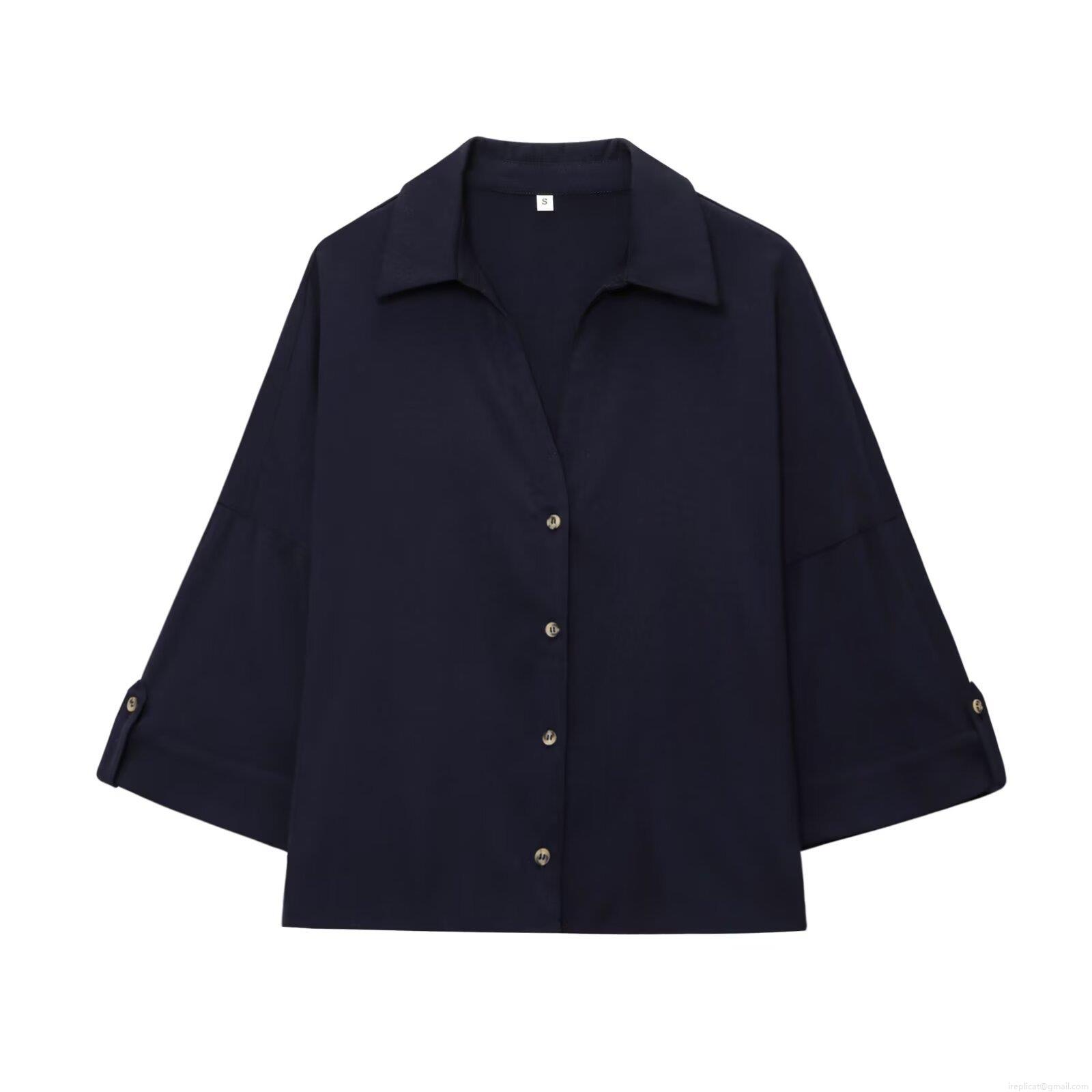 • Women's Loose Casual Short Sleeve Blouse Shirt Turn-down Collar Solid Color Button Down Top Summer Fashion Streetwear Polyester Apparel Office Wear