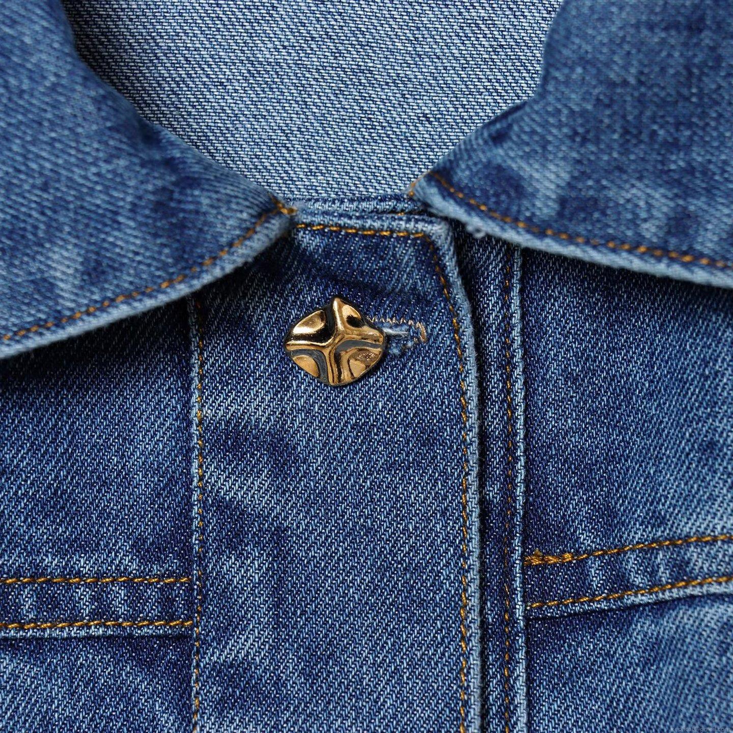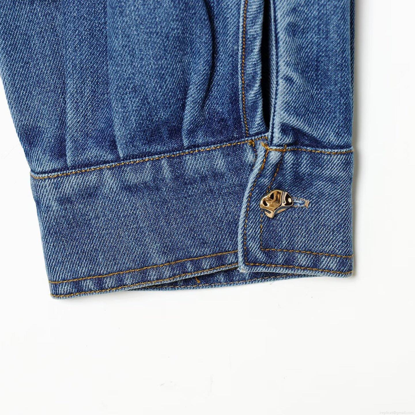 • Women's Loose Denim Shirt Blouse Long Lantern Sleeve Lapel Semi Placket Top With Leopard Head Button Casual Distressed Western Style Streetwear