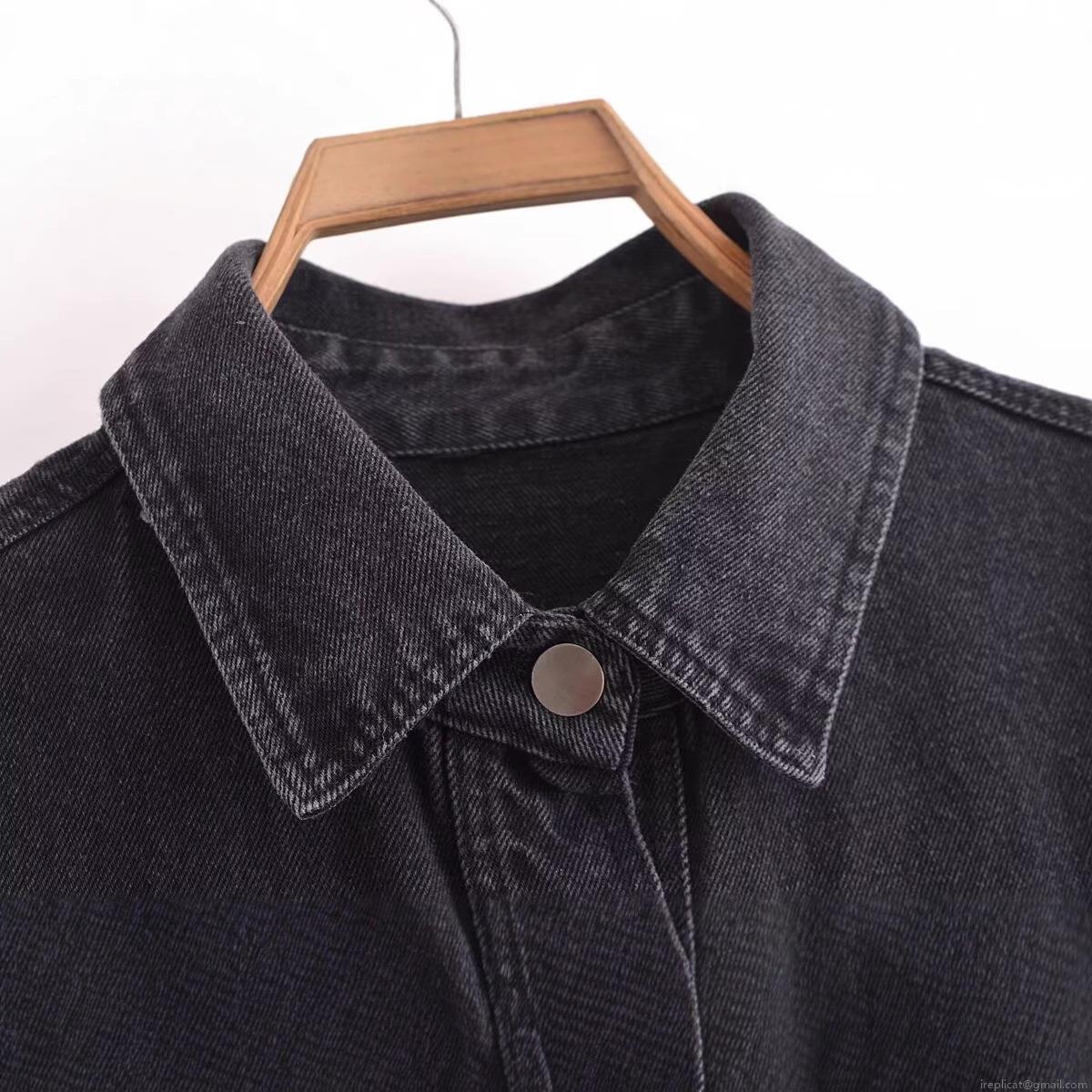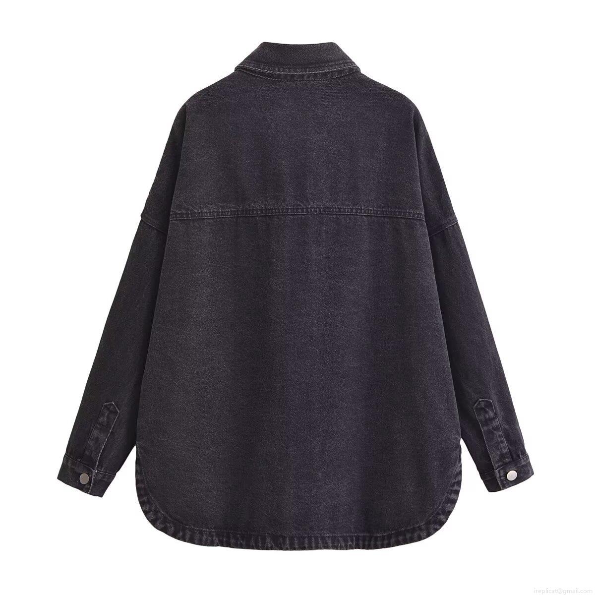 • Women's Loose Denim Texture Shirt Polyester Lapel Long Sleeve Blouse With Double Pockets Casual Streetwear Button Down Top For Summer Autumn Women