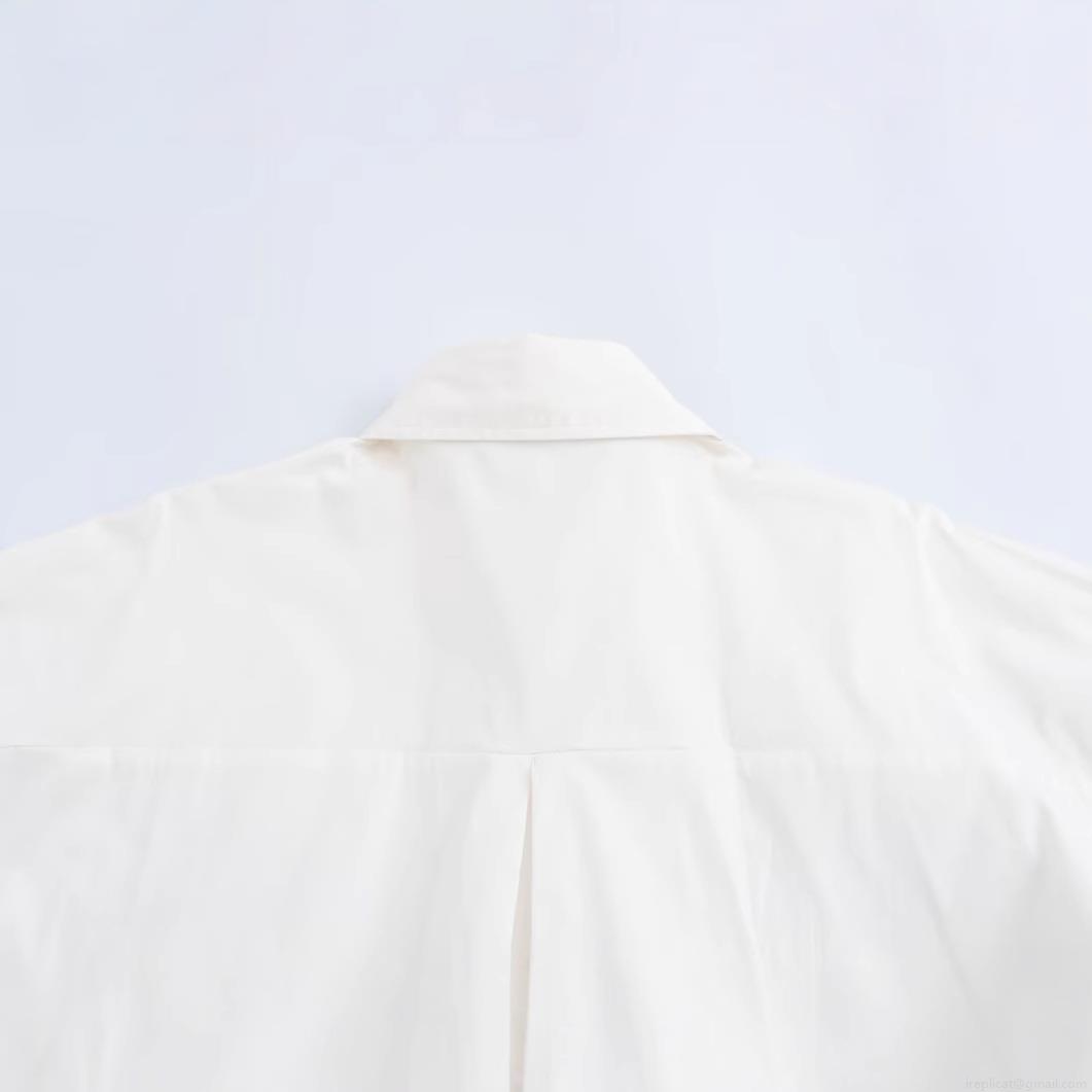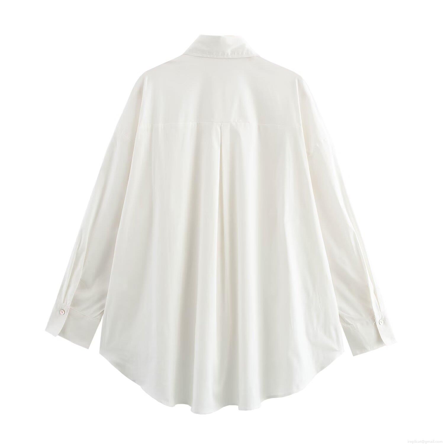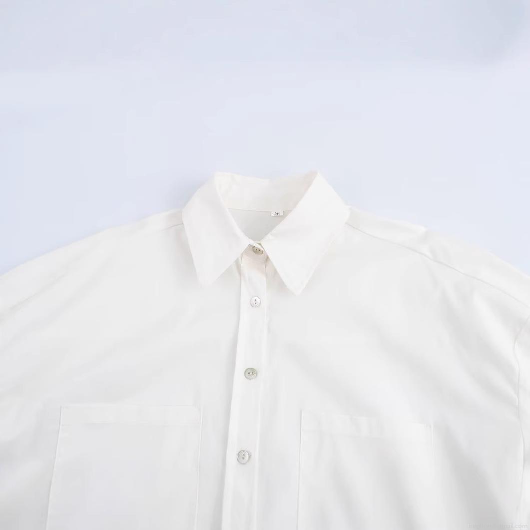 • Women's Loose Long Sleeve Polyester Shirt Lapel Button Down Blouse With Pockets Casual Streetwear Solid White Top