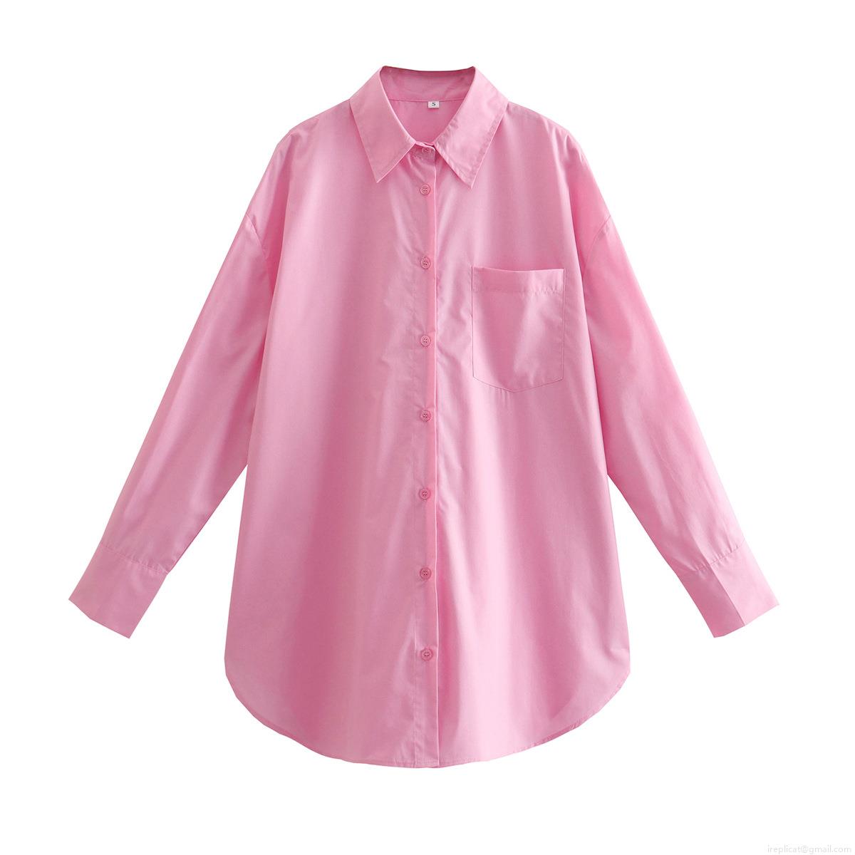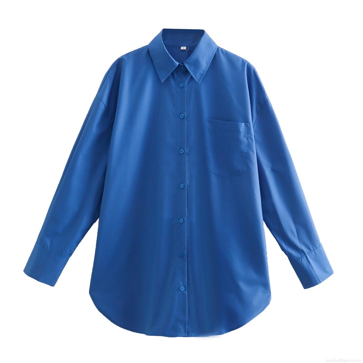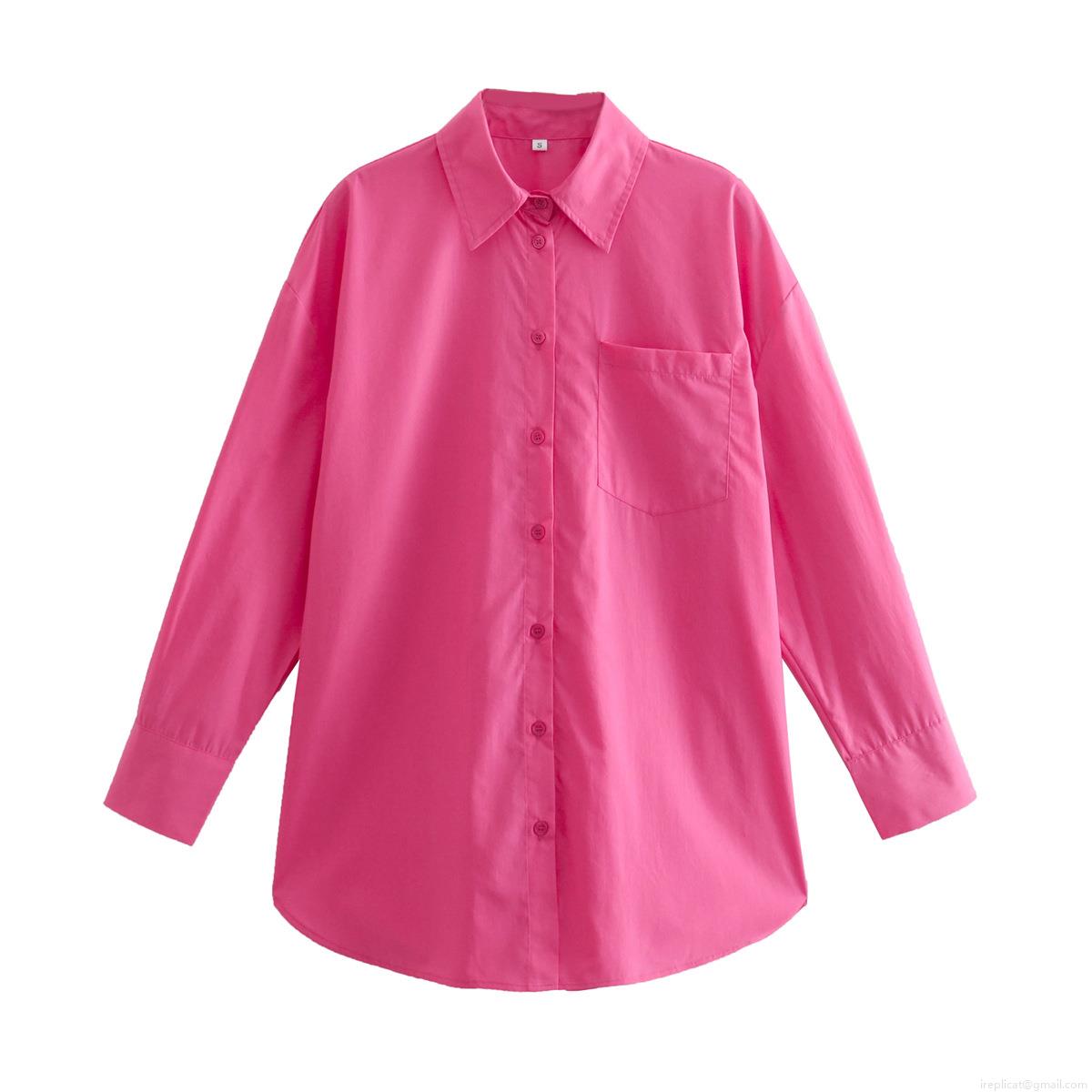 • Women's Loose Oversized Shirt Jacket Casual Cotton Blend Long Sleeve Button Down Blouse Top With Front Pocket Solid Color For Vacation Streetwear