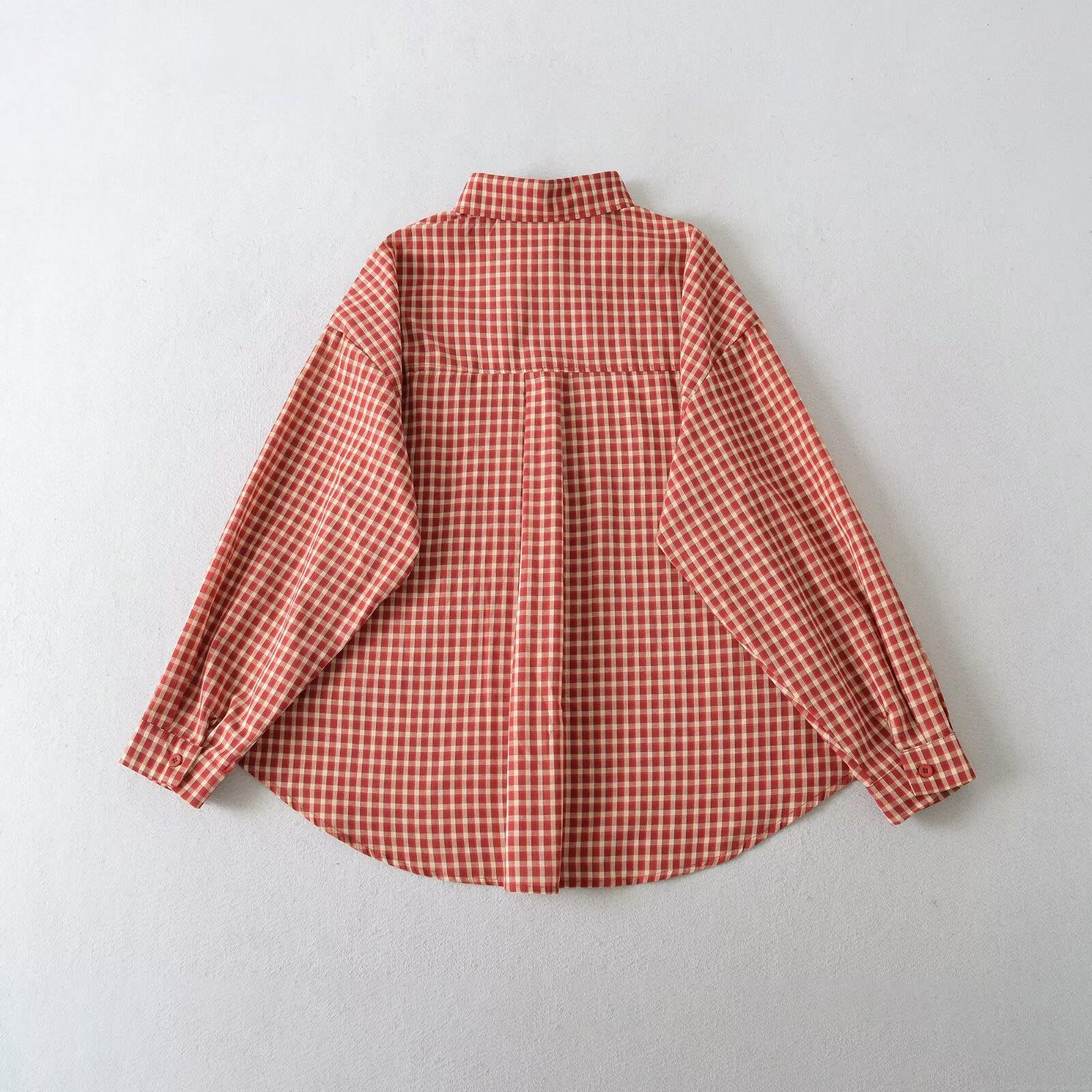 • Women's Loose Plaid Checked Shirt Polyester Long Sleeve Lapel Button Down Blouse Street Style Casual Autumn Top For Women Fashionable Outerwear