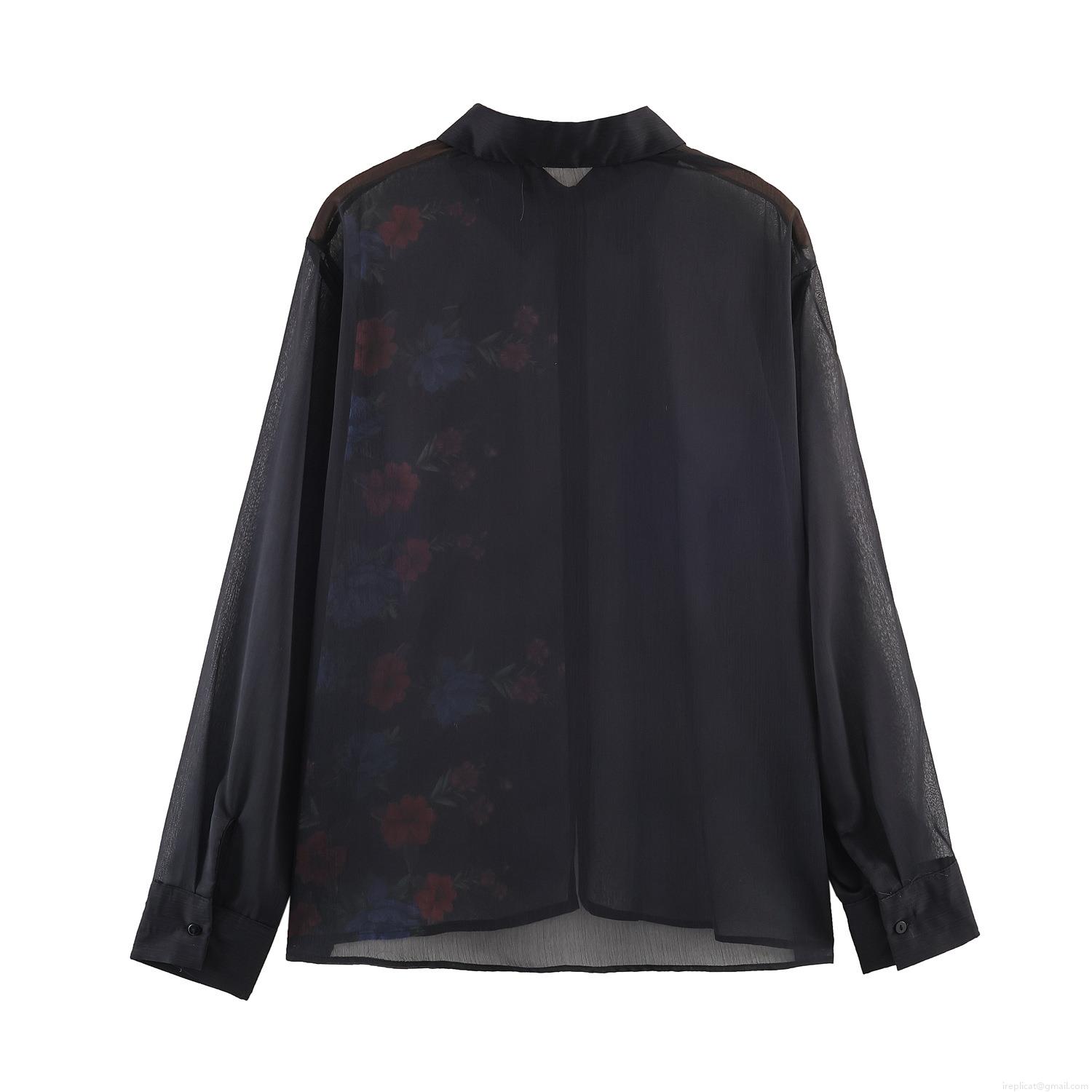 • Women's Loose Sheer Chiffon Blouse With Floral Print Sexy Long Sleeve Button Down Shirt For Casual Party Fashion Tops