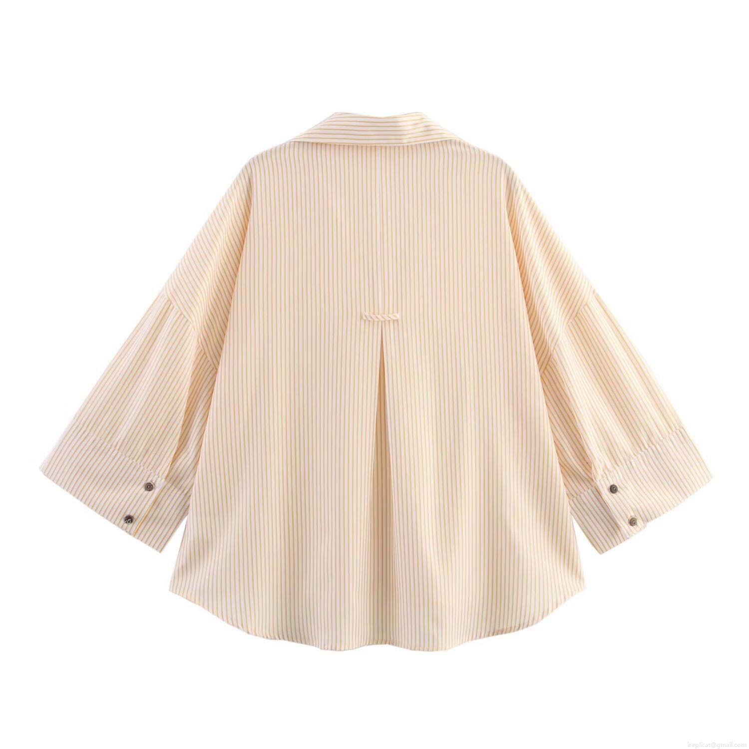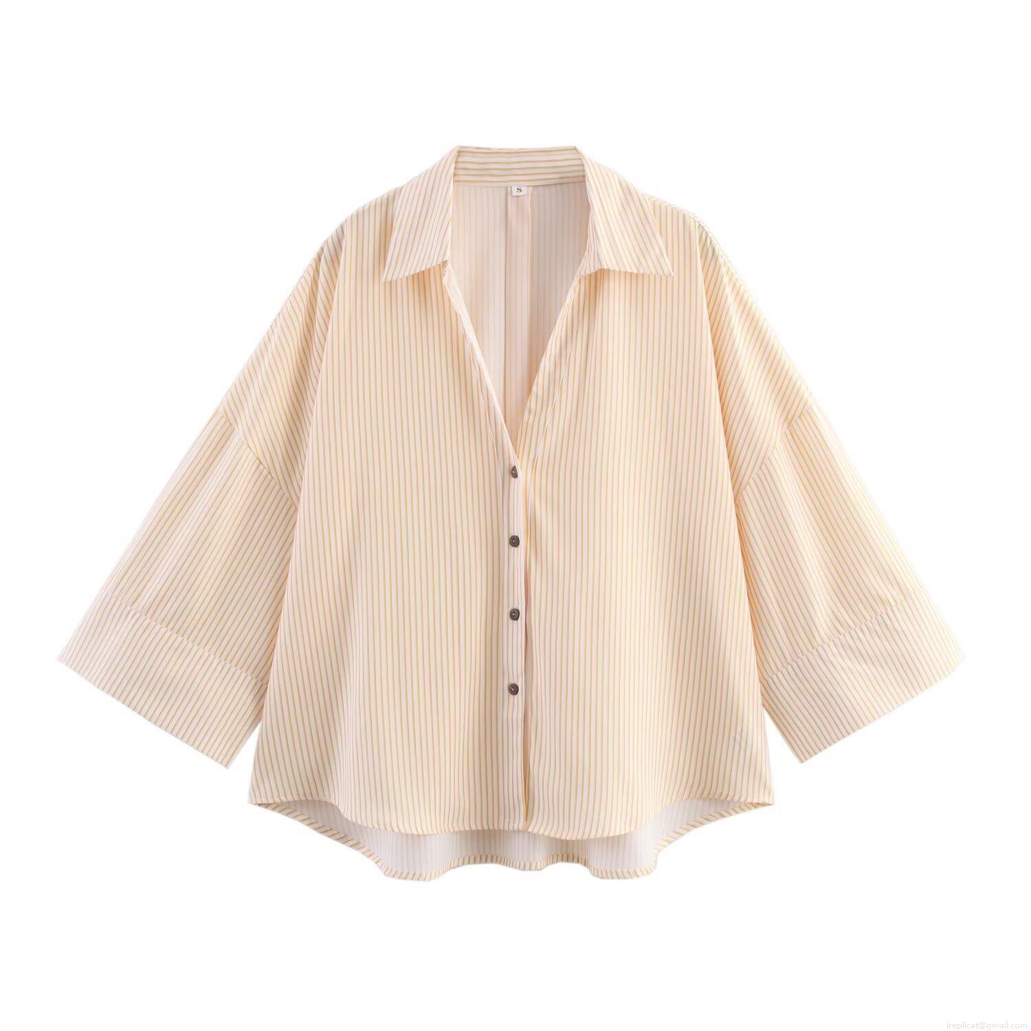 • Women's Loose Striped Long Sleeve Lapel Shirt Button Down Polyester Blouse Casual Oversized Streetwear Autumn Top For Daily Wear Yellow White