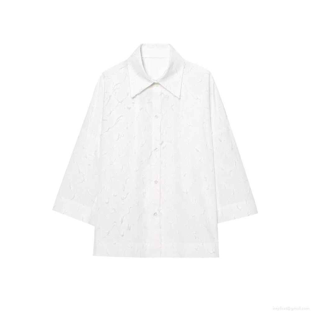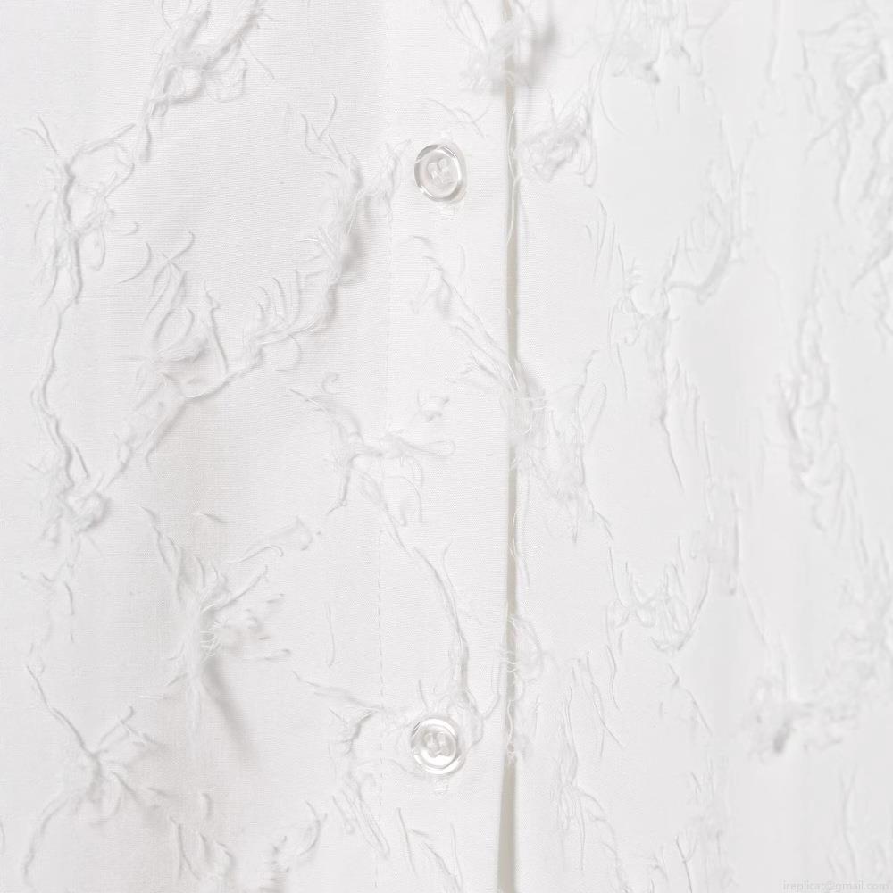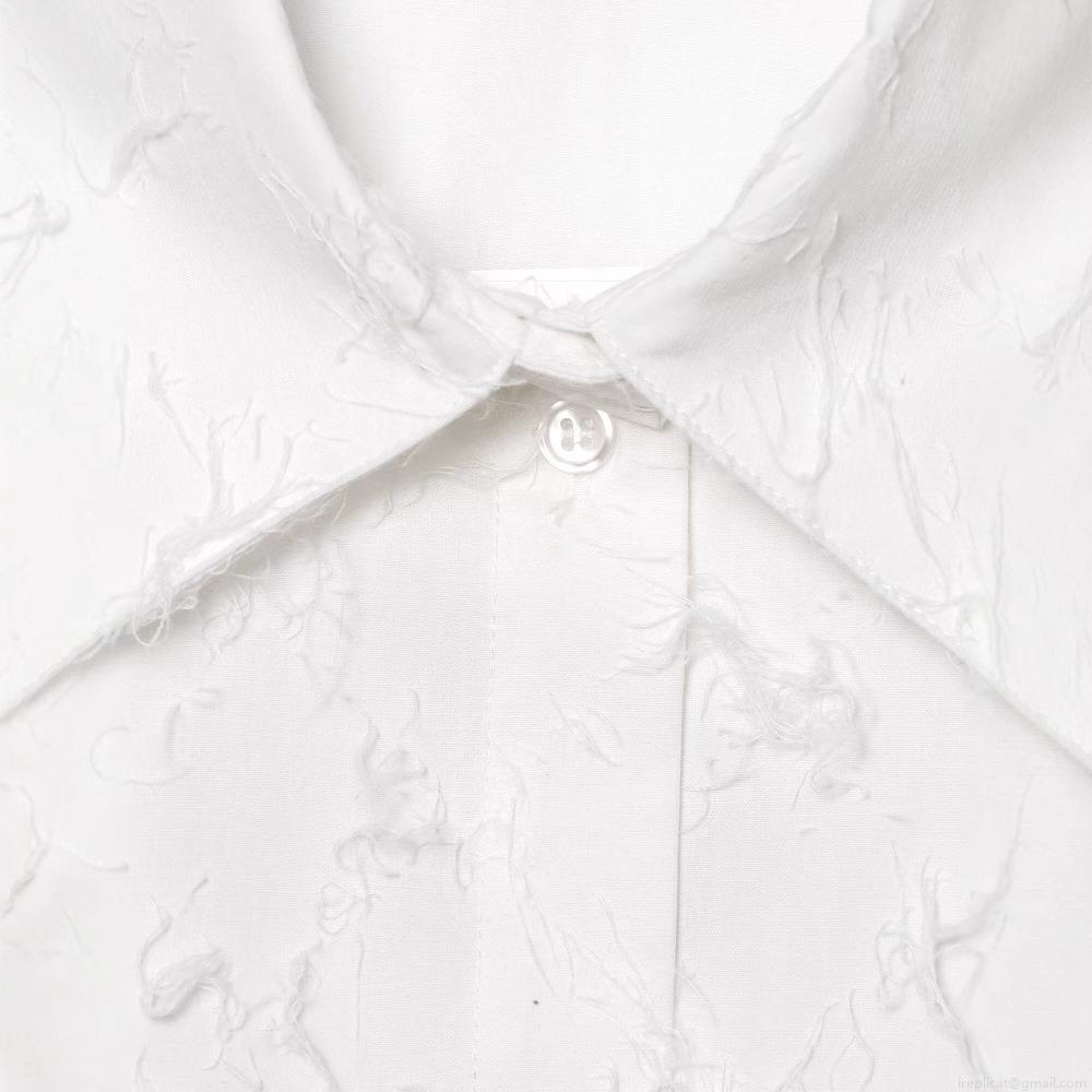 • Women's Loose Turn-down Collar Long Sleeve Shirt With Fringe Tassel Texture Solid White Button Down Blouse Top For Summer Streetwear Office
