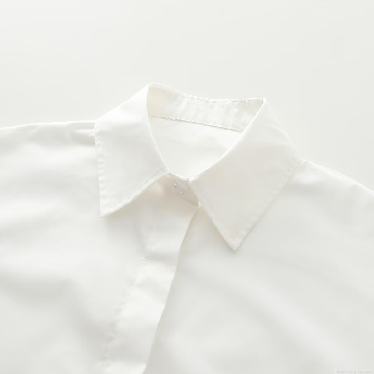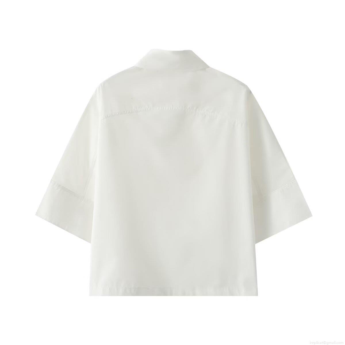 • Women's Minimalist Short Sleeve Poplin Shirt Loose Fit Solid Color Casual Top With Hidden Buttons Lightweight Cotton Blouse For Daily Office Wear