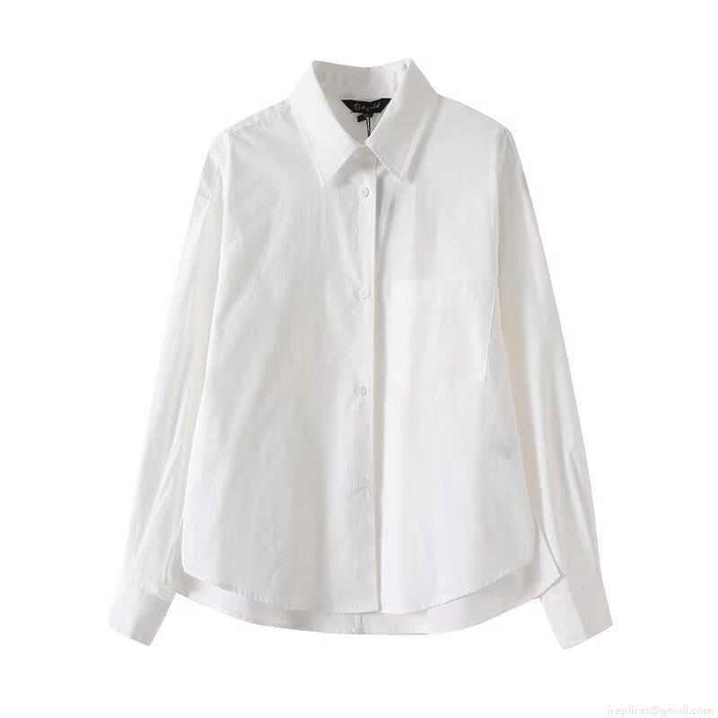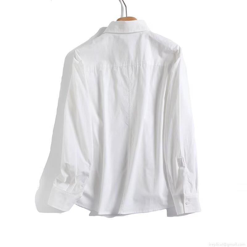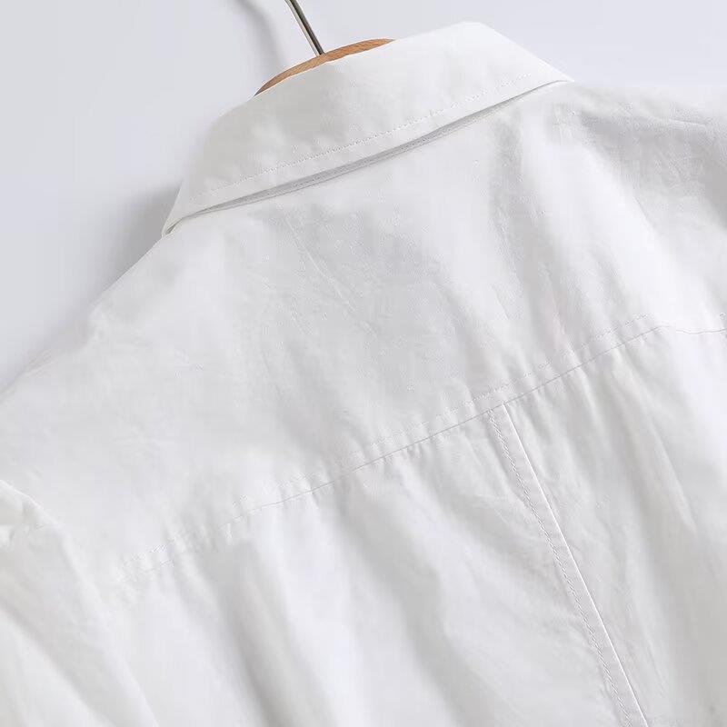 • Women's Minimalist White Long Sleeve Blouse Asymmetrical Hem Cotton Blend Shirt Casual Lapel Button Up Top With Chest Pocket For Women Office Streetwear