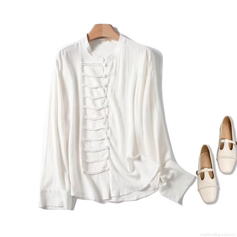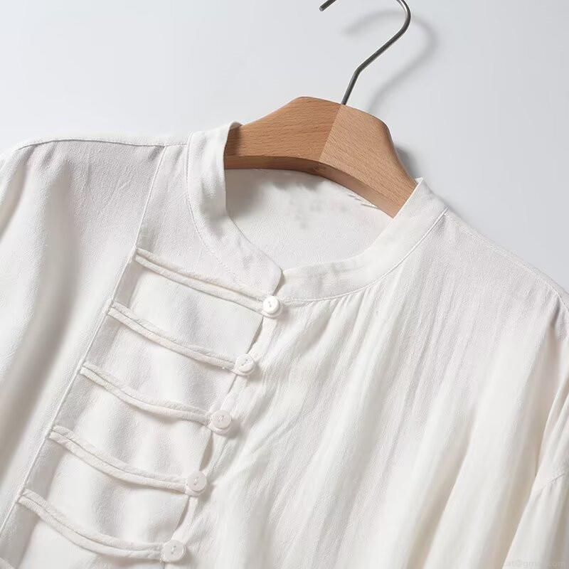 • Women's New Chinese Style Blouse Viscose Linen Blend Stand Collar Frog Button Long Sleeve Shirt Elegant Solid White Top for Daily Office Wear