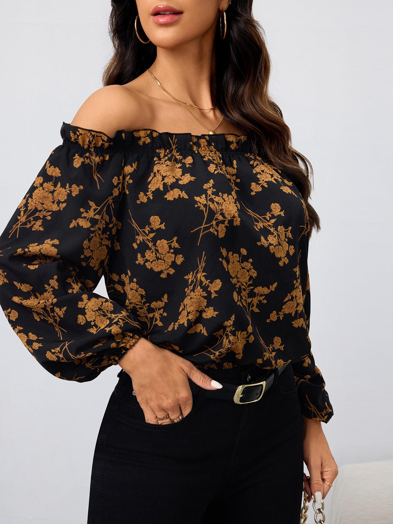 • Women's Off Shoulder Floral Print Blouse Elegant Long Sleeve One Neckline 100% Polyester Tops For Casual Daily Dating Autumn Sweet Style Shirt