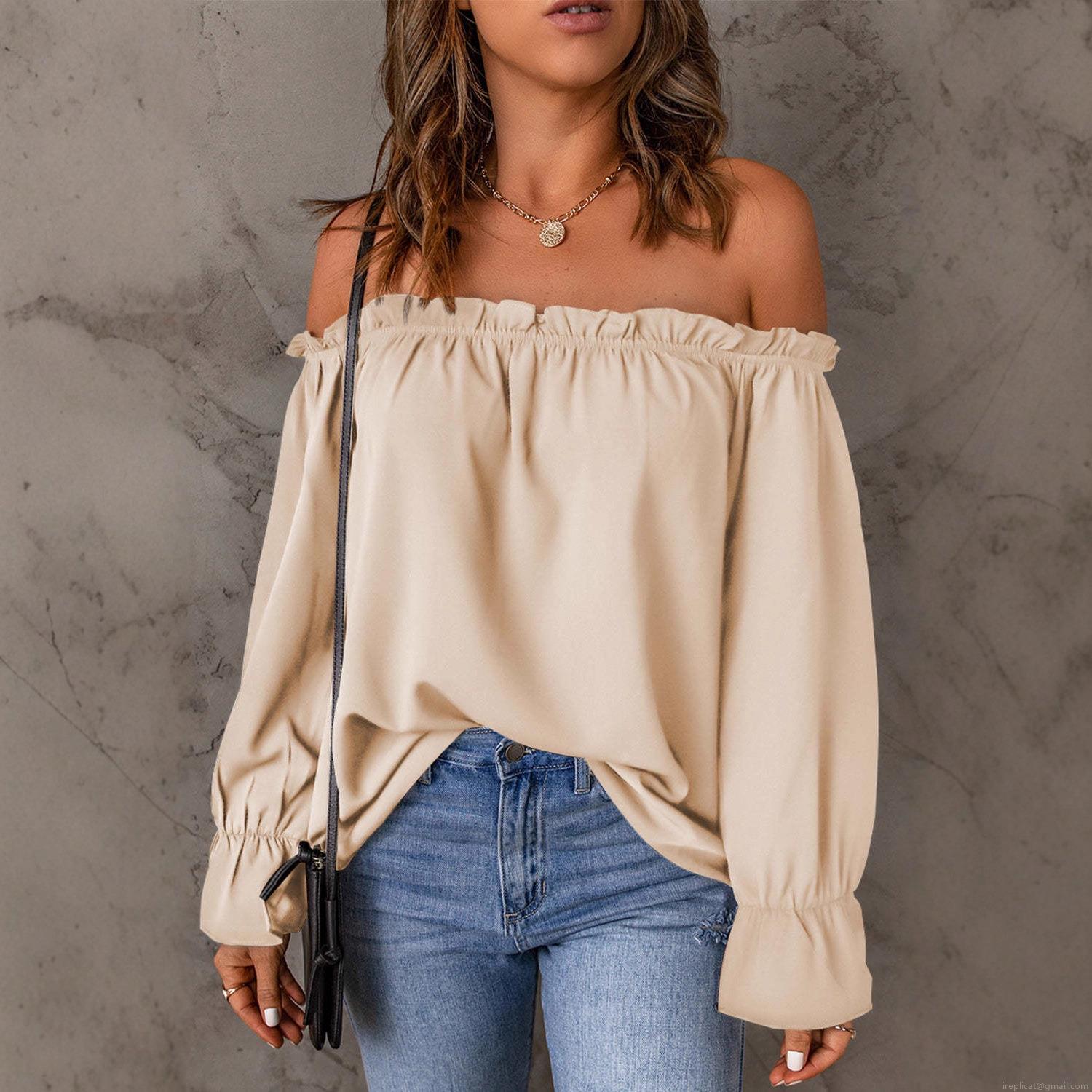 • Women's Off-the-Shoulder Chiffon Blouse Sexy Solid Color Long Sleeve Ruffle Top Loose Casual Streetwear Shirt With Bell Sleeves