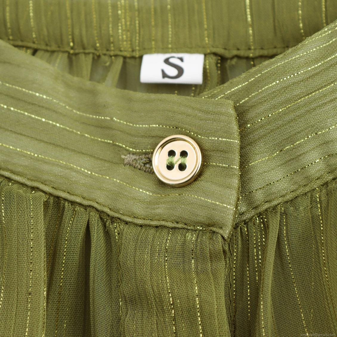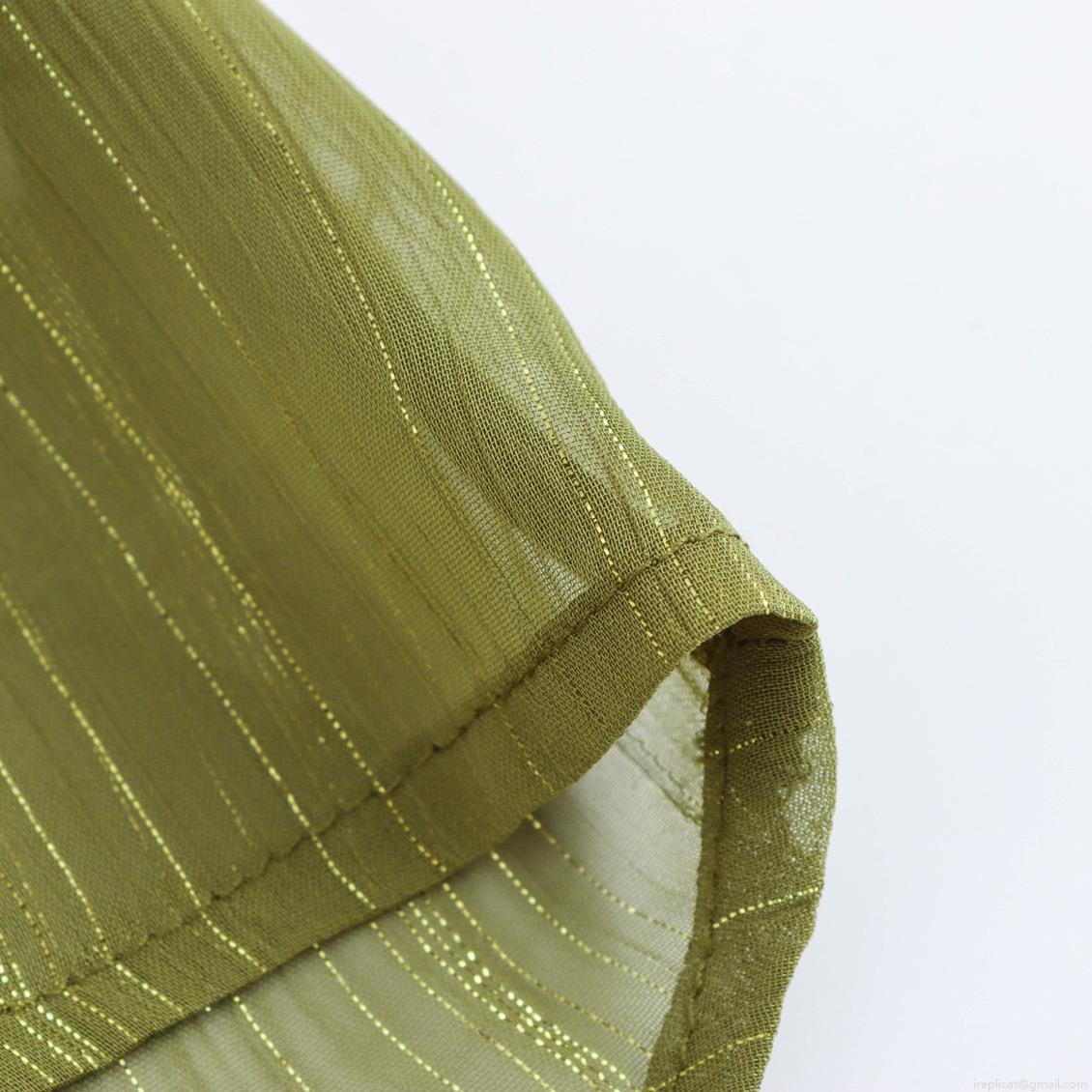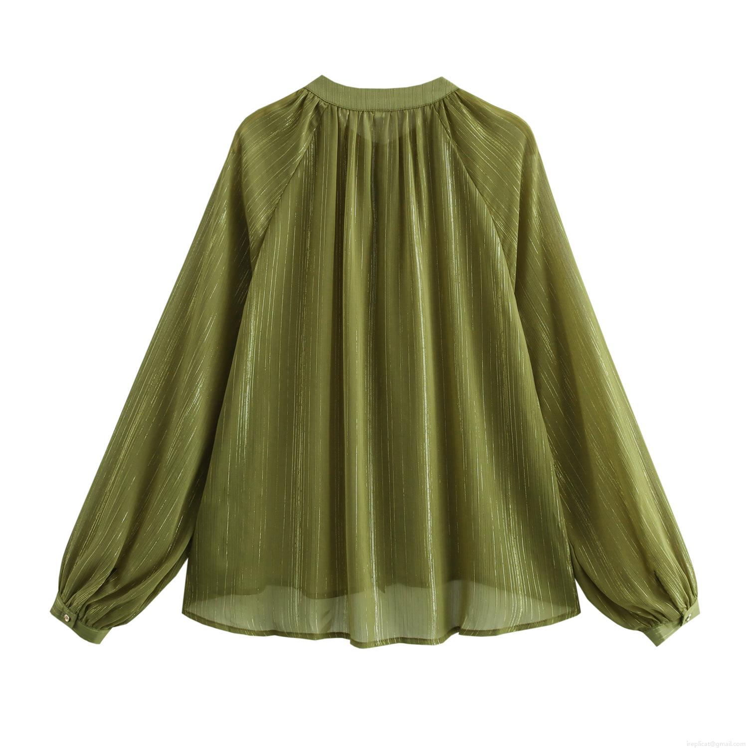 • Women's Olive Green Chiffon Blouse Elegant Stand Collar Long Lantern Sleeve Shirt Metallic Gold Striped Smocked Tops Loose Fit Commute Apparel
