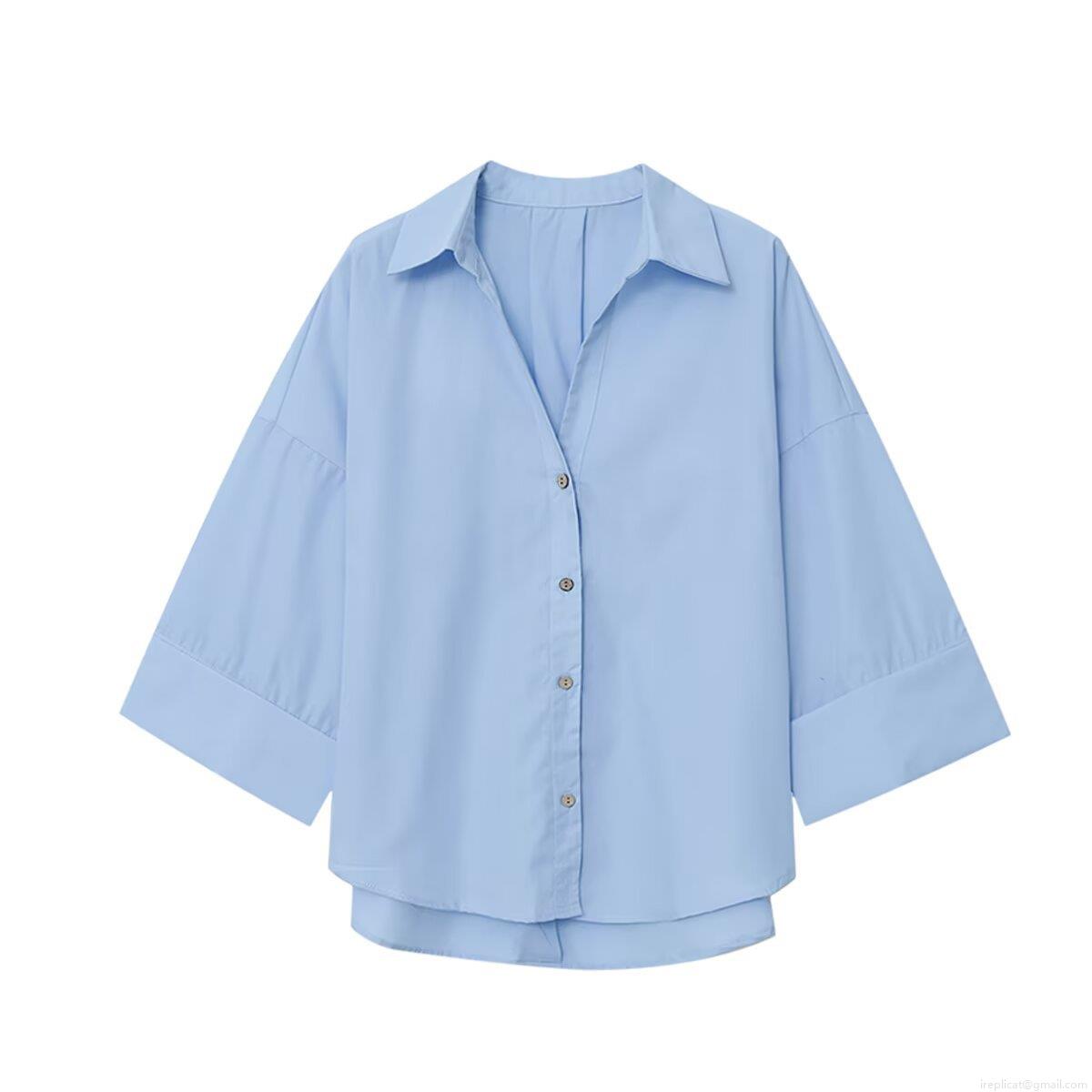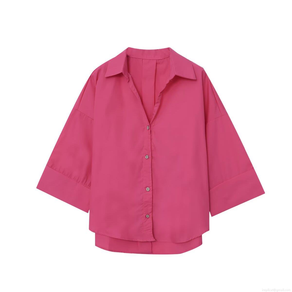 • Women's Oversized Solid Color Polyester Blouse Short Sleeve Button Up Lapel Casual Summer Shirt Streetwear Top