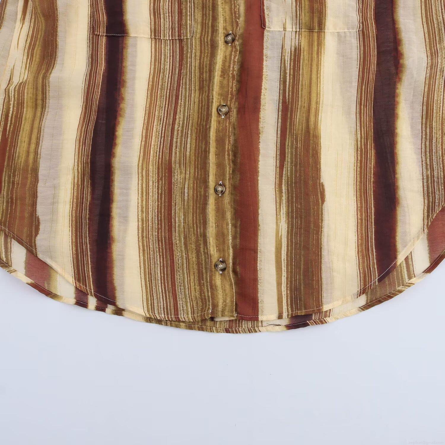 Pocket, Buttons, Vertical Stripes, Curved Hem