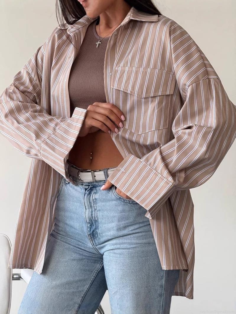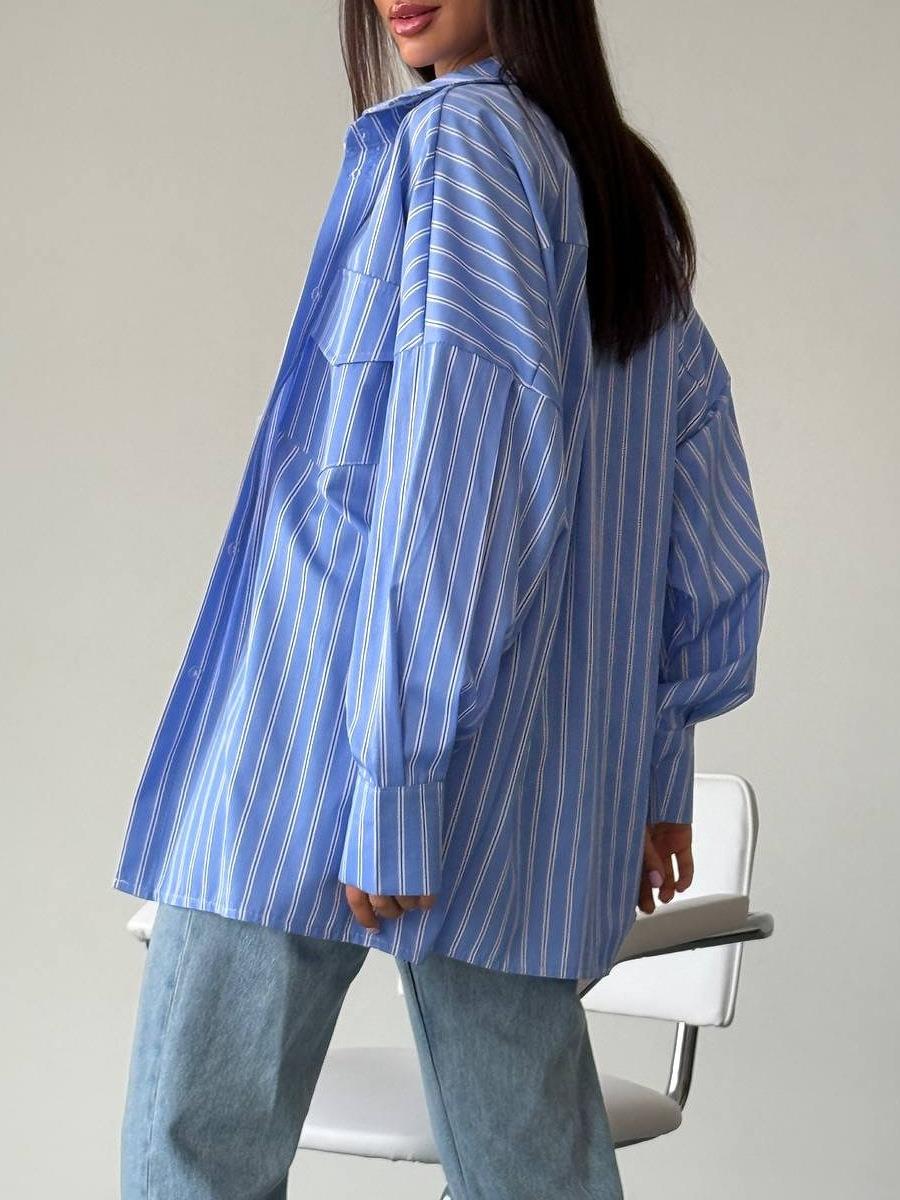 • Women's Oversized Vertical Striped Cotton Long Sleeve Shirt Casual Loose Button Down Blouse With Front Pockets Streetwear Fashion Tops