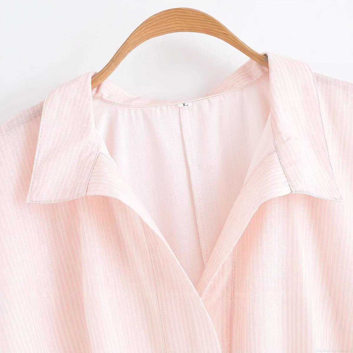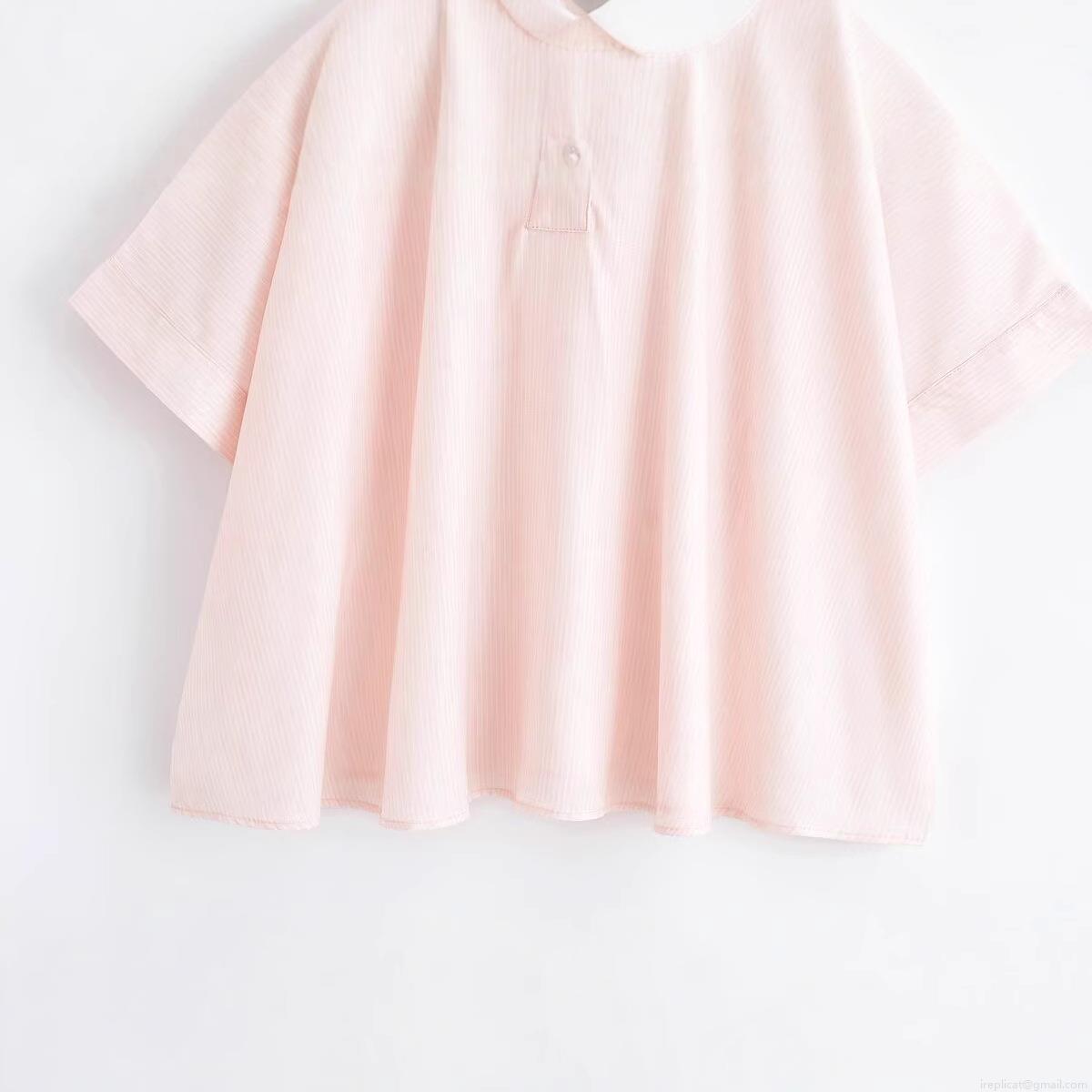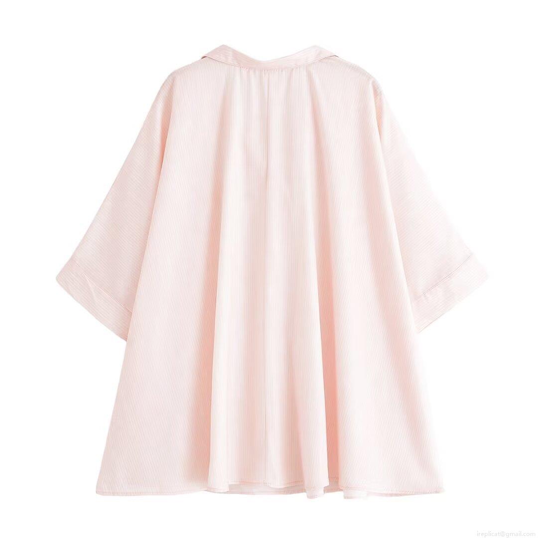 • Women's Oversized Vertical Striped Short Sleeve Blouse Polyester V-Neck Lapel Casual Loose Summer Shirt Top for Streetwear Daily Wear Pink