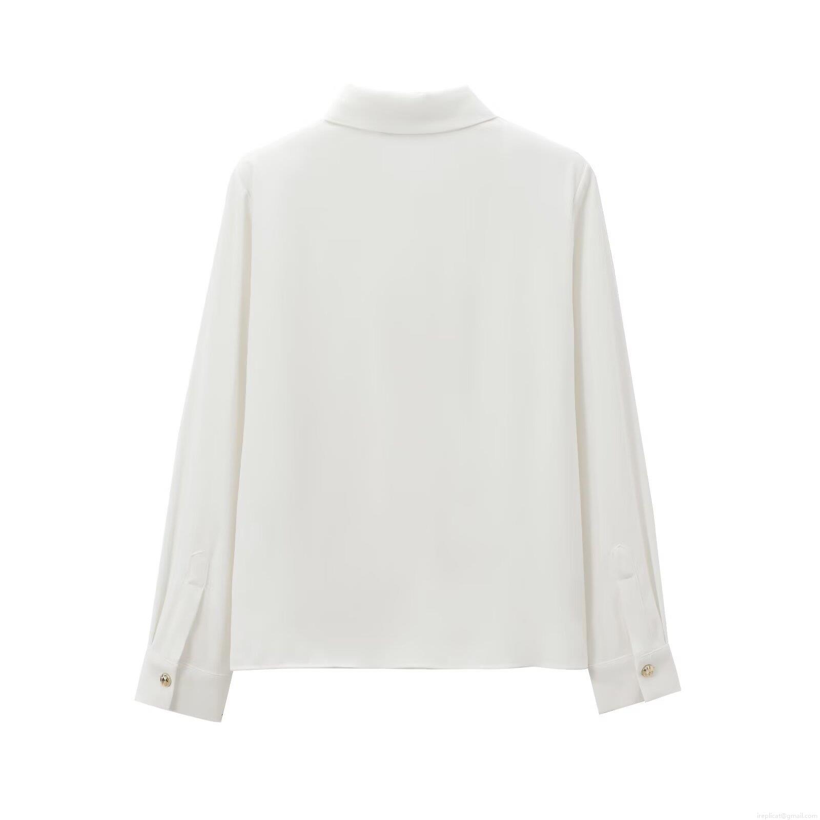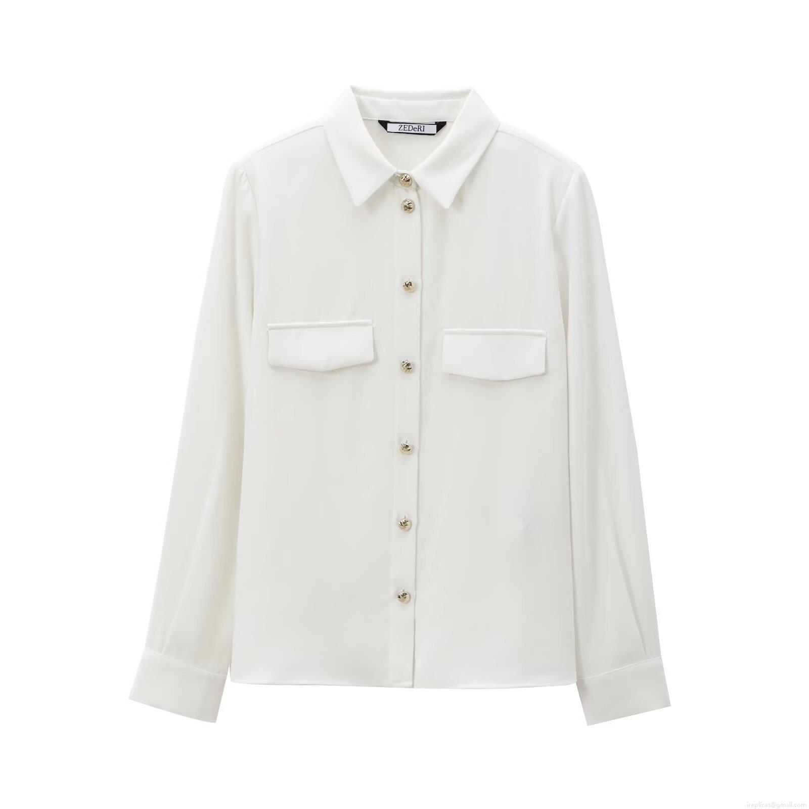• Women's Padded Shoulder Crepe Shirt Long Sleeve Single-Breasted Blouse With Golden Buttons Solid Color Fashion Streetwear Top For Casual Office Wear