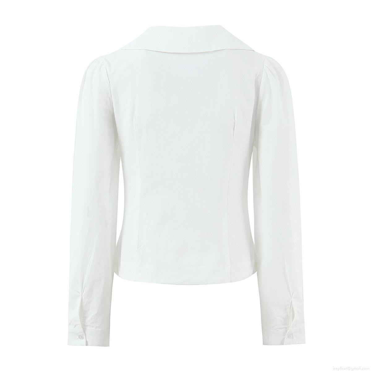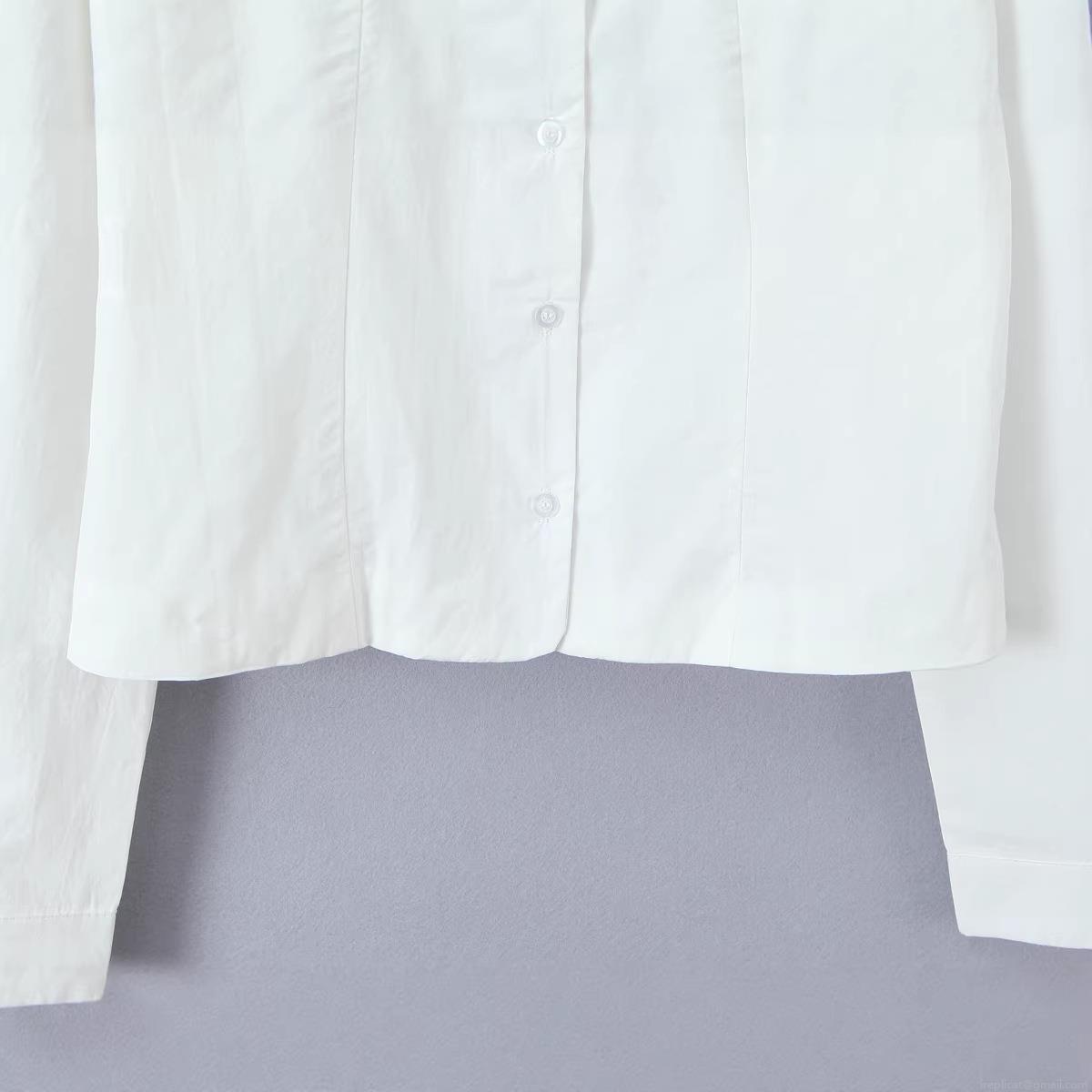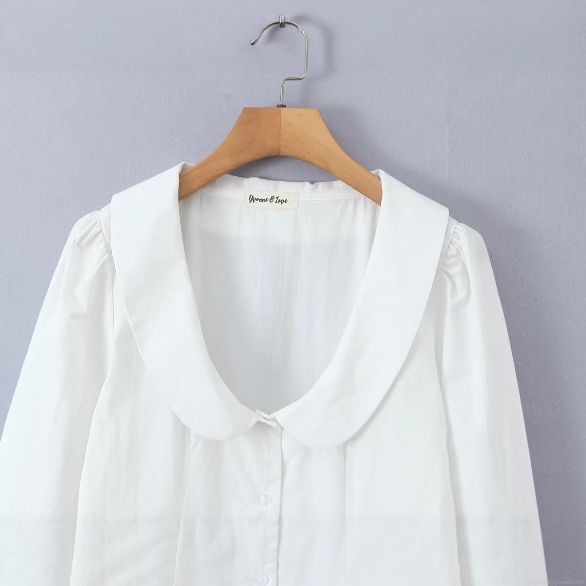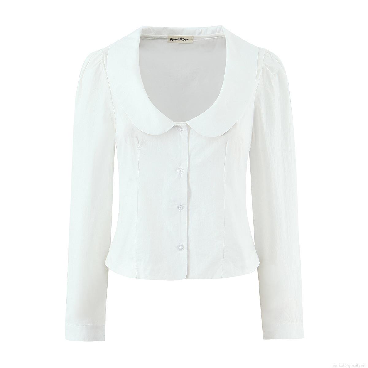 • Women's Peter Pan Collar Cotton Shirt Elegant Single Breasted Long Sleeve Slim Fit Blouse For Work Daily Casual White Streetwear Top