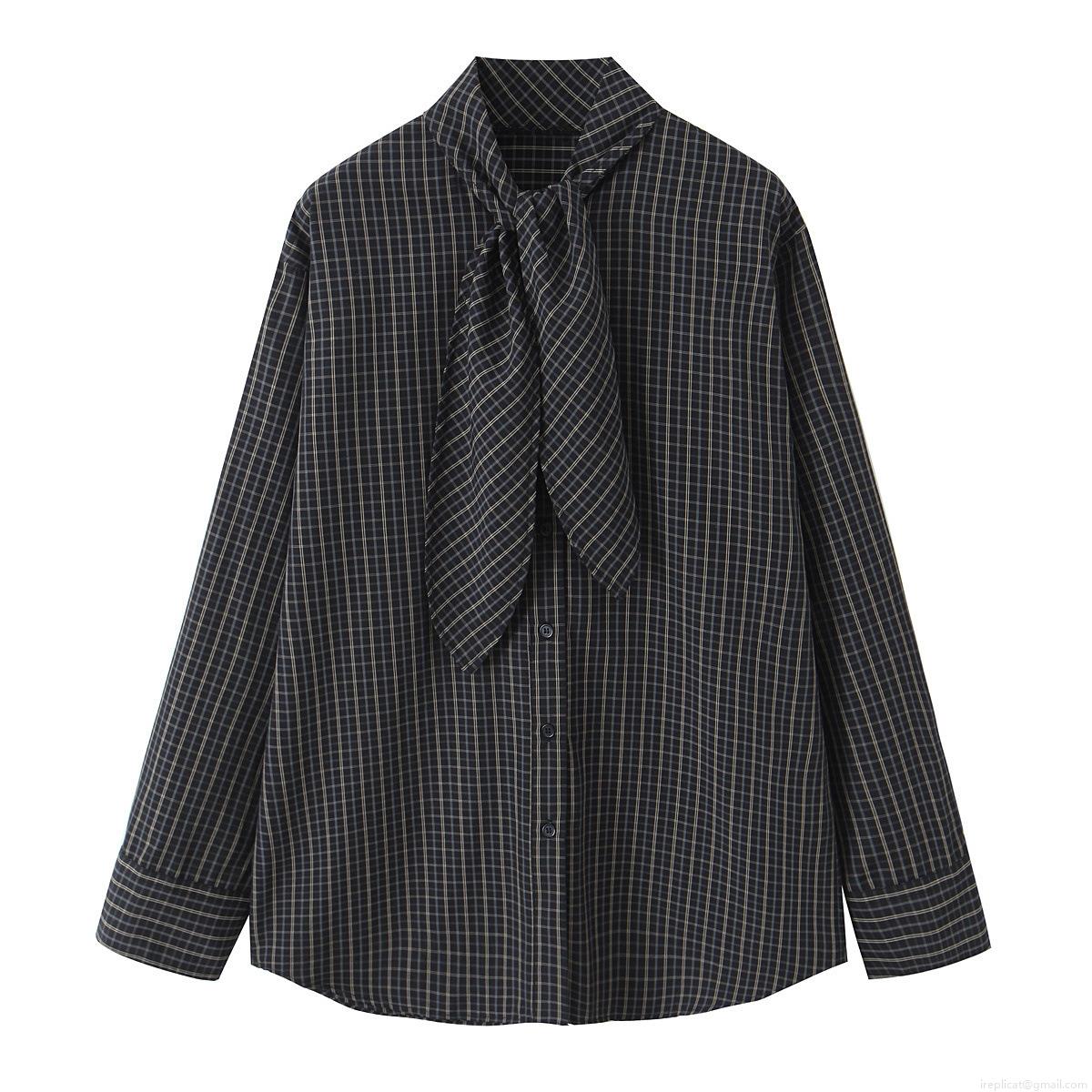 • Women's Plaid Contrast Stripe Long Sleeve Shirt Bow Tie Collar Polyester Spandex Casual Blouse Top For Work Daily Autumn Winter Fashion