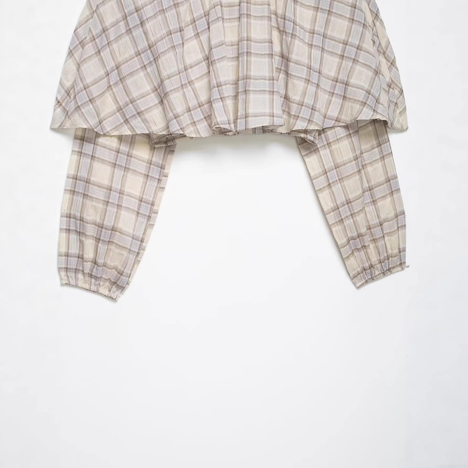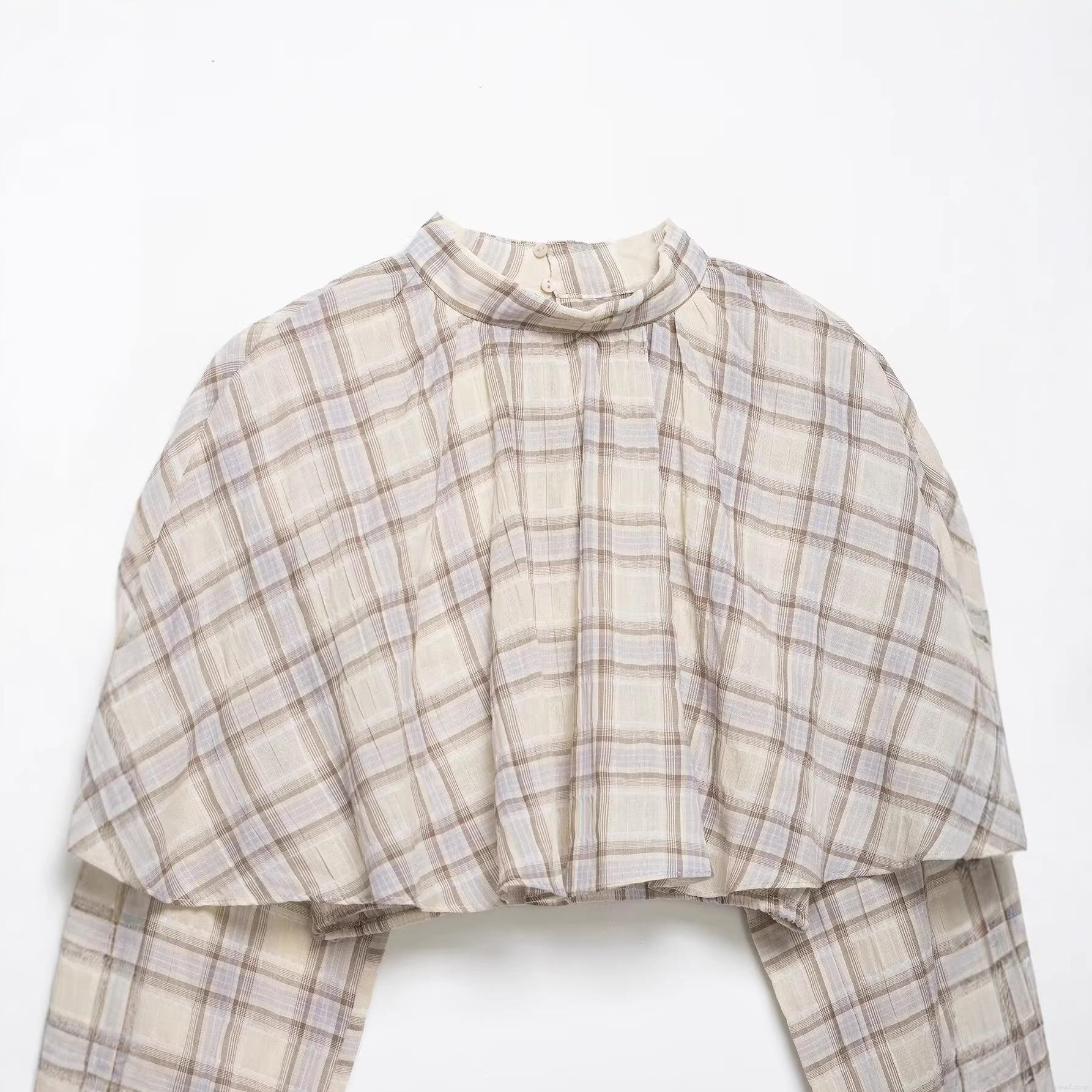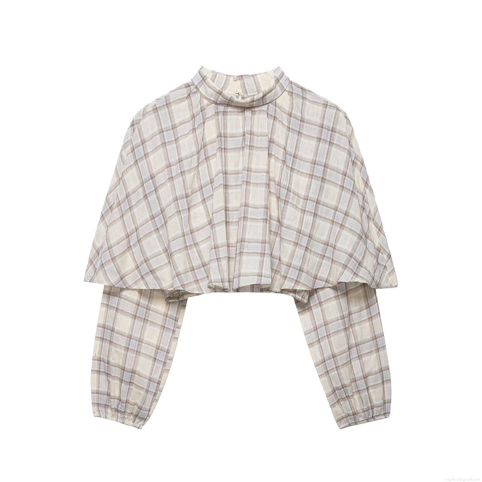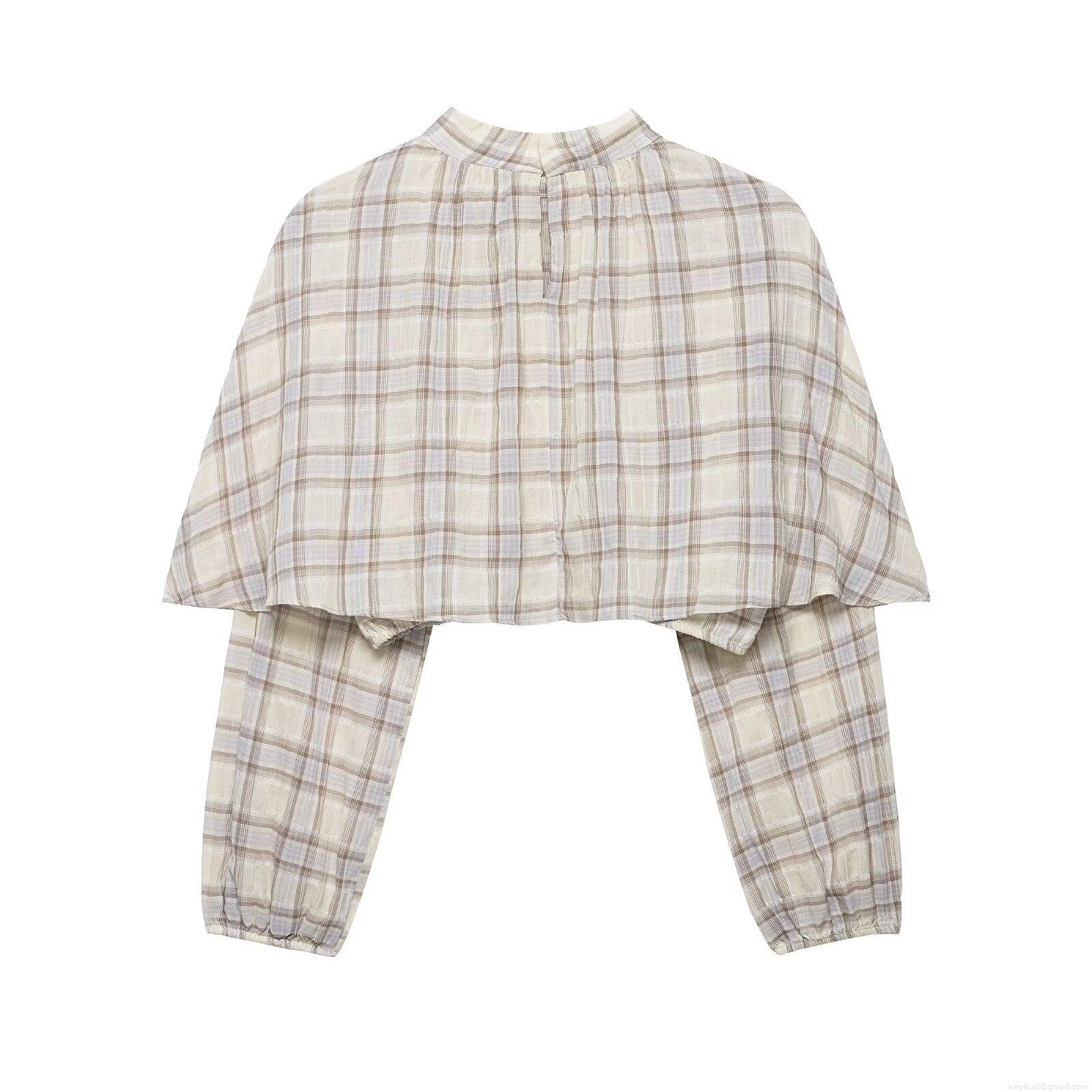 • Women's Plaid Layered Crop Top High Neck Long Sleeve Cape Overlay Blouse 100% Polyester Woven Check Pattern Streetwear Casual Autumn Top