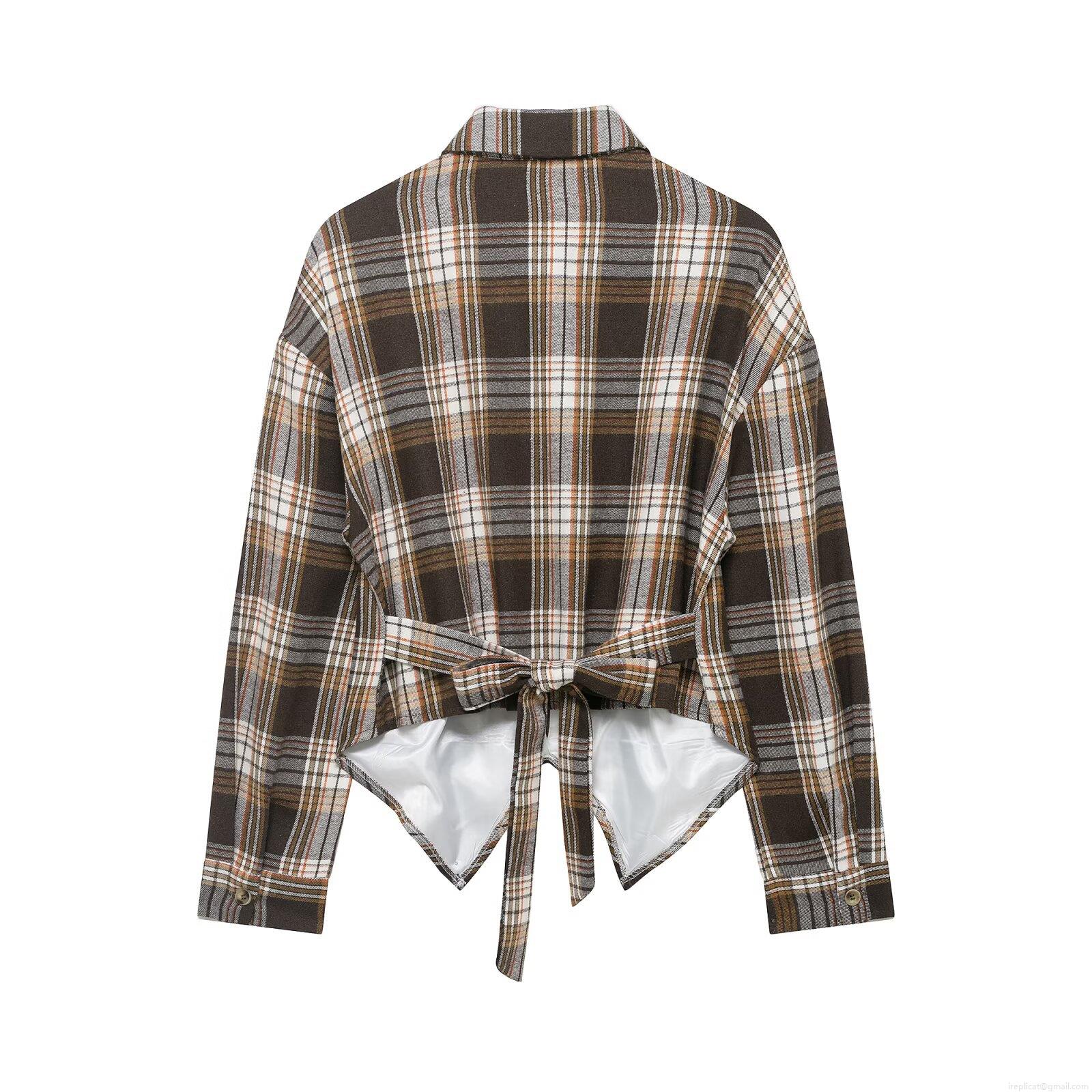Women's Plaid Long Sleeve Blouse 100% Polyester Back Bow Tie College Style Fashion Sweet Turn-down Collar Short Shirt Top For Women Daily Dating School