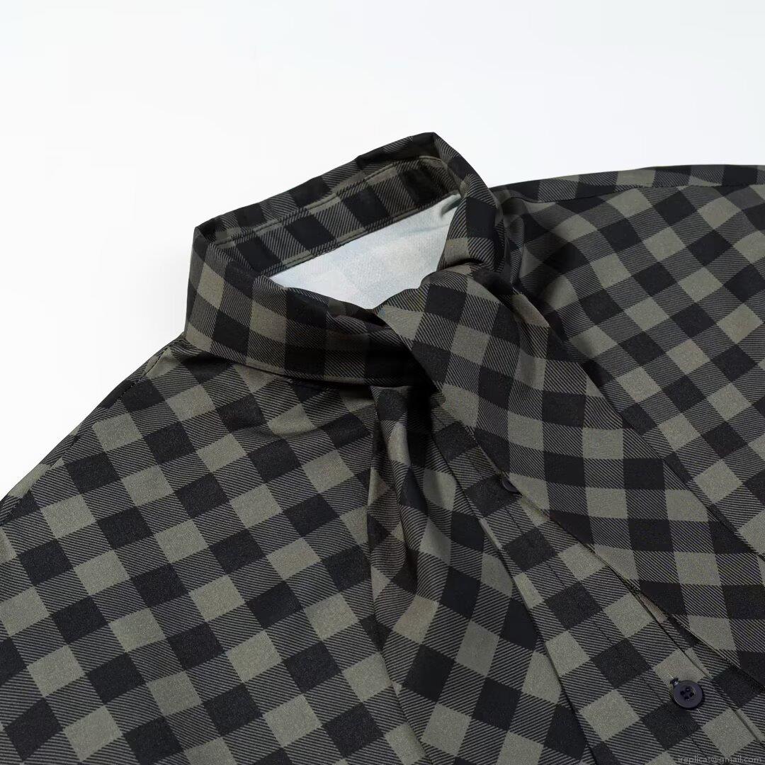 • Women's Plaid Long Sleeve Blouse Bow Tie Neck Polyester Button Down Shirt Elegant Casual Tops for Office Dating Women