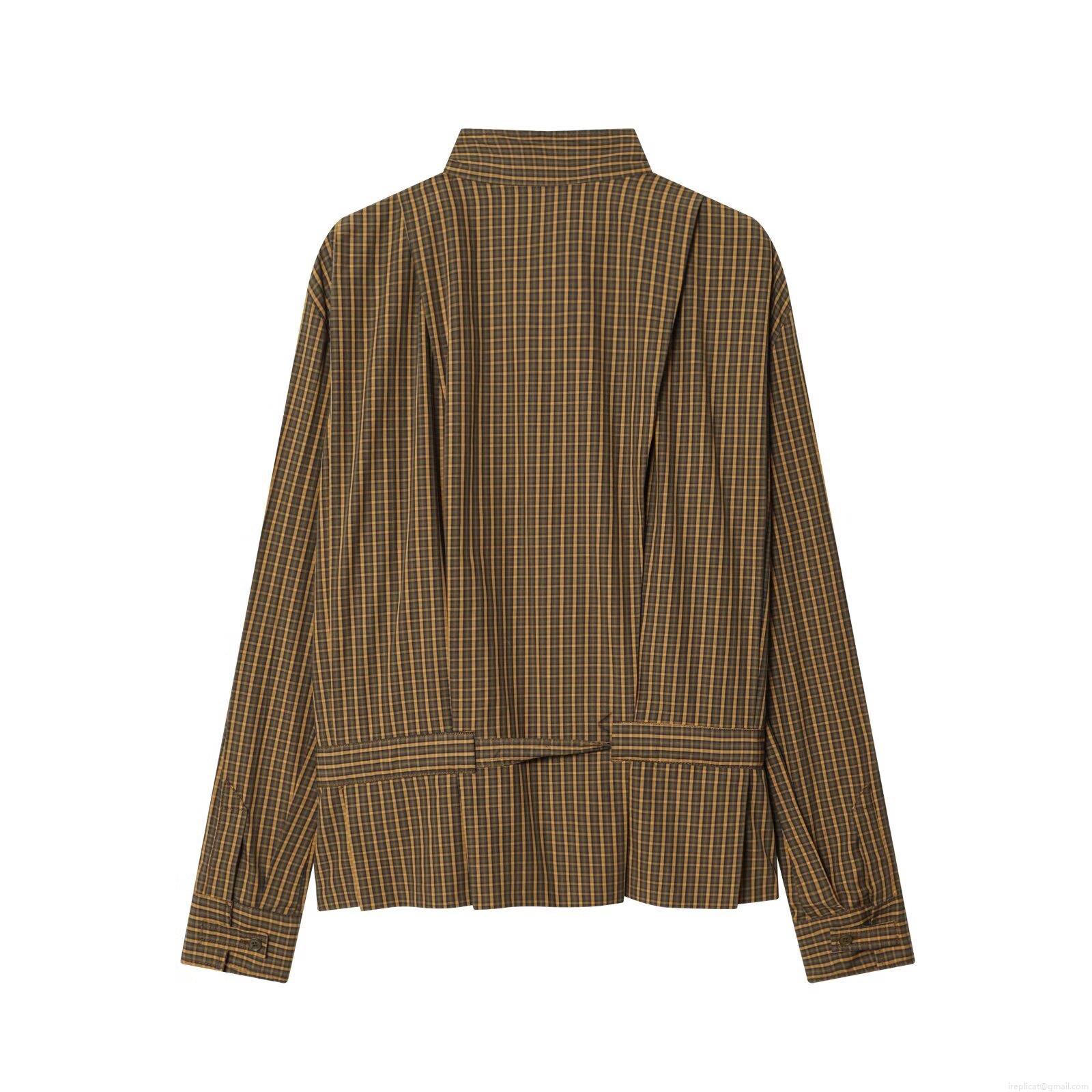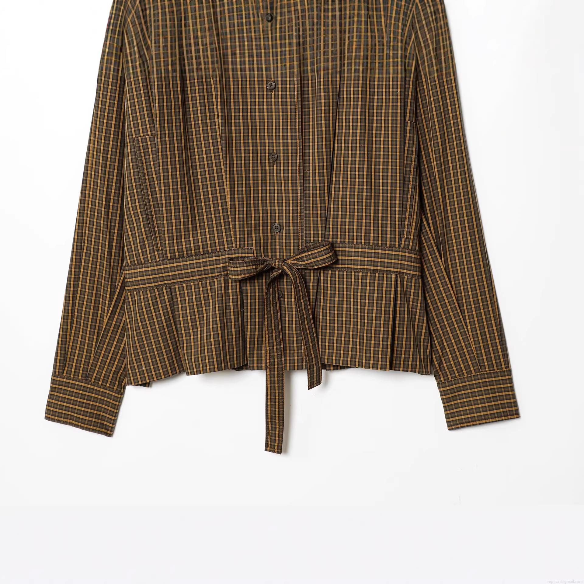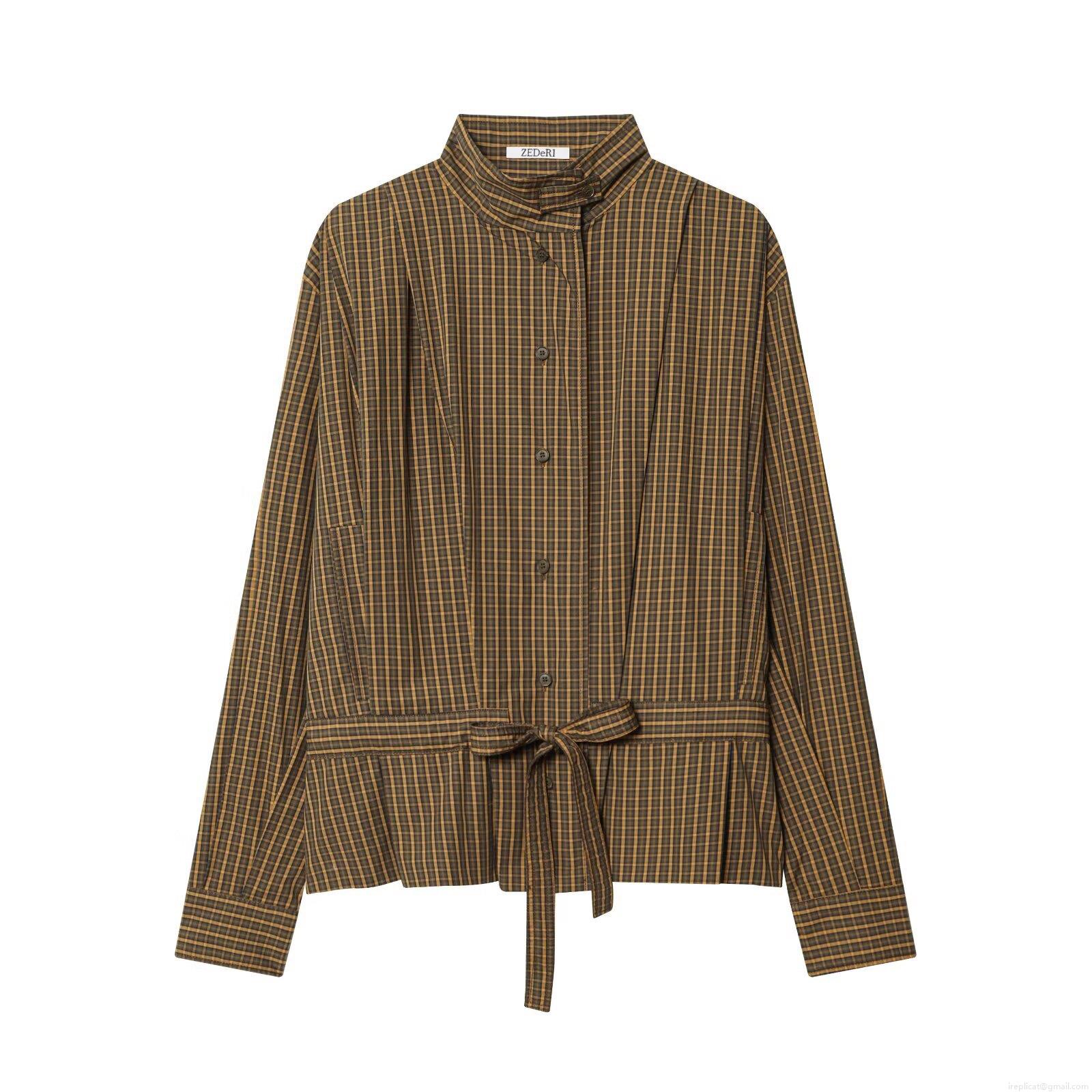 • Women's Plaid Long Sleeve Blouse Shirt Polyester Retro Bow Tie Waist Button Down Stand Collar Casual Elegant Tops For Ladies