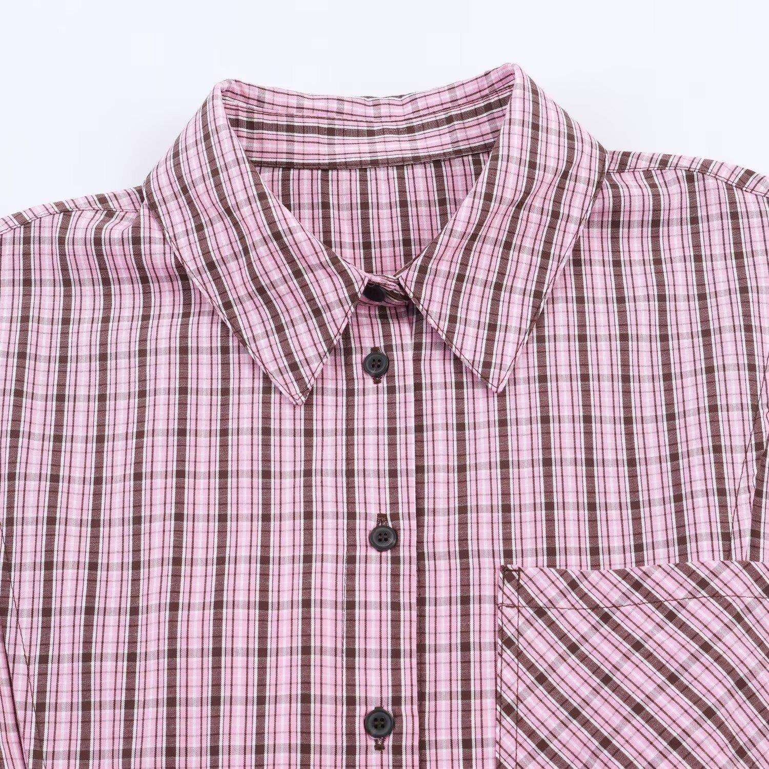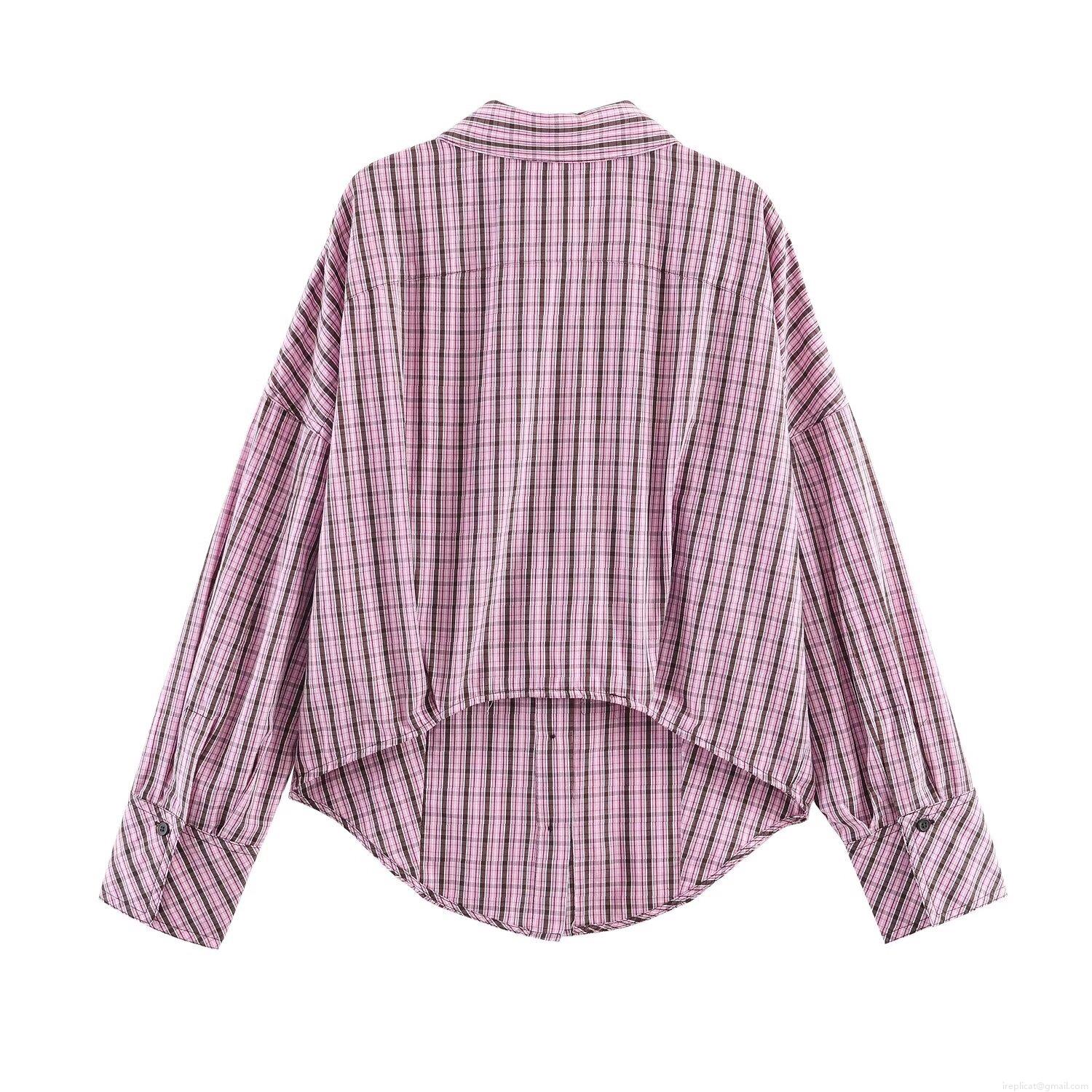 • Women's Plaid Long Sleeve Button Down Blouse Casual Polyester Spandex Shirt With Waist Drawstring Sweet Checkered Top For Women Daily Wear