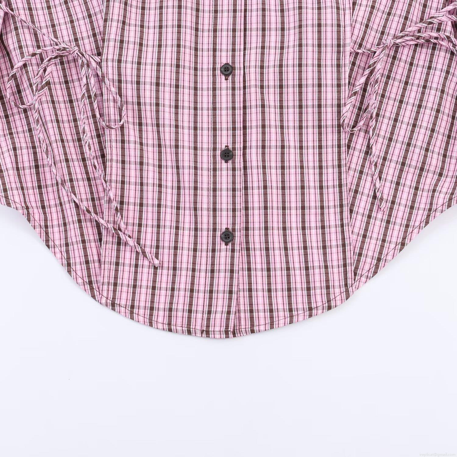 Women's Plaid Long Sleeve Button Down Blouse Casual Polyester Spandex Shirt With Waist Drawstring Sweet Checkered Top For Women Daily Wear