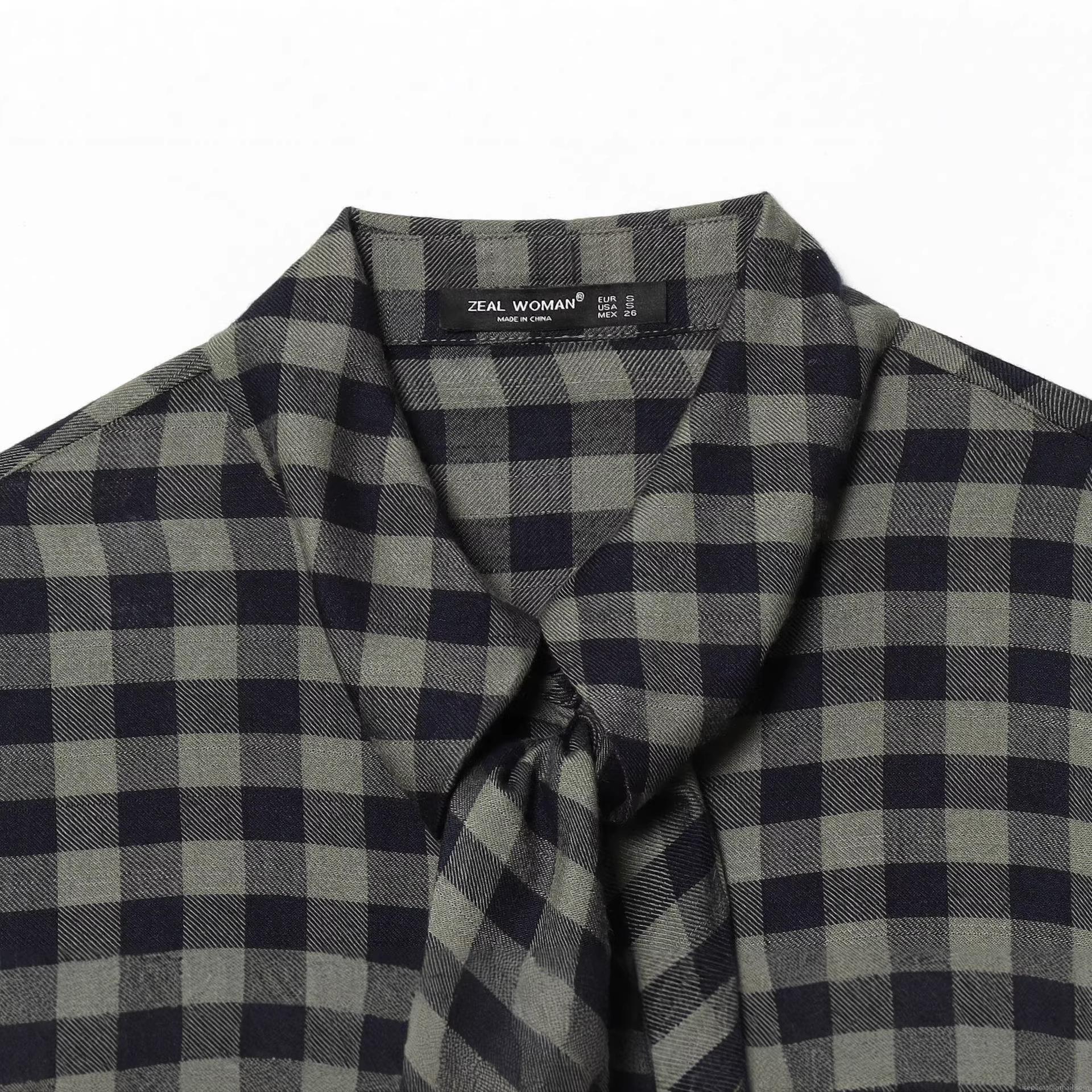 Women's Plaid Long Sleeve Shirt Blouse 100% Polyester Tie Neck Loose Fit Gingham Single Breasted Casual Streetwear Tops For Women