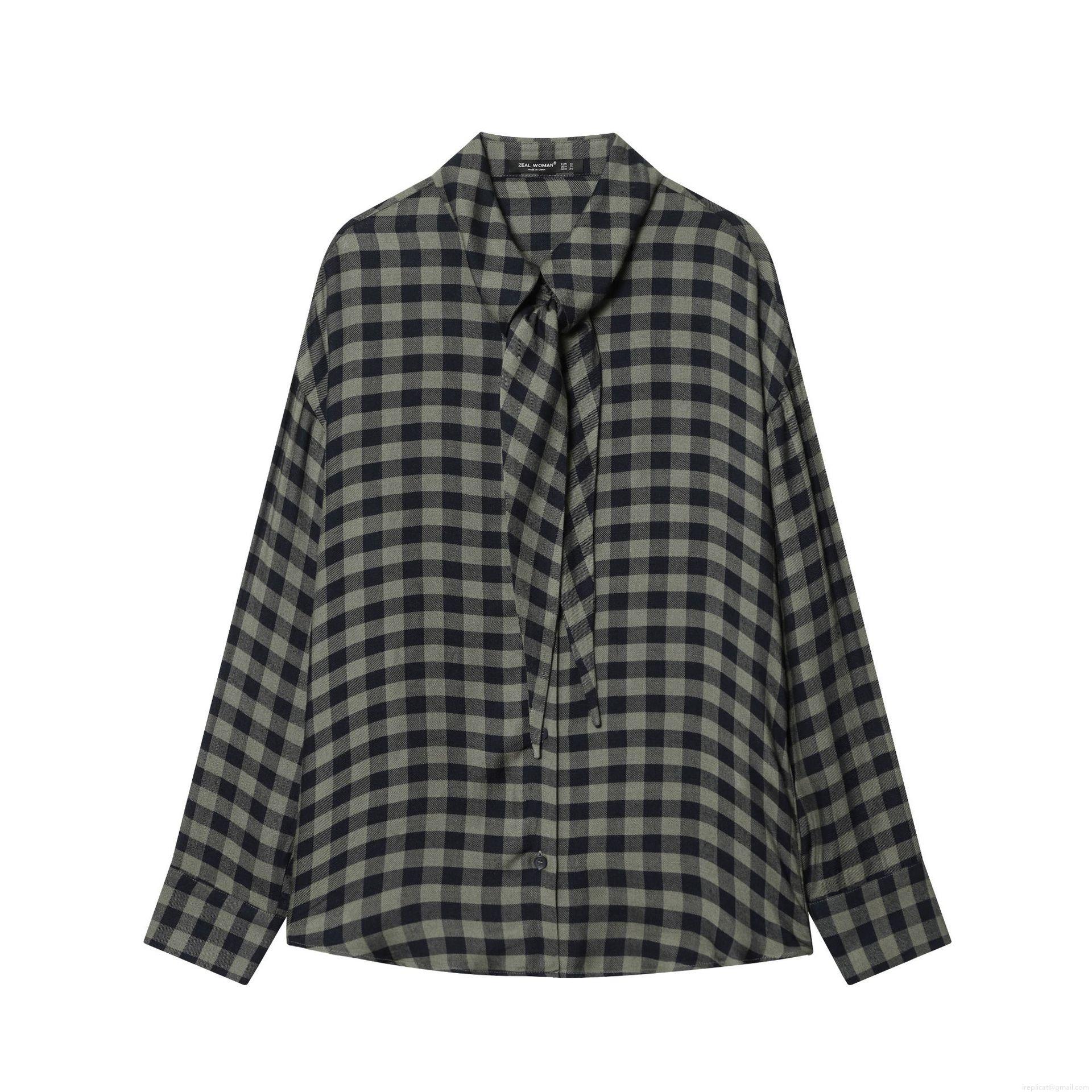 • Women's Plaid Long Sleeve Shirt Blouse 100% Polyester Tie Neck Loose Fit Gingham Single Breasted Casual Streetwear Tops For Women
