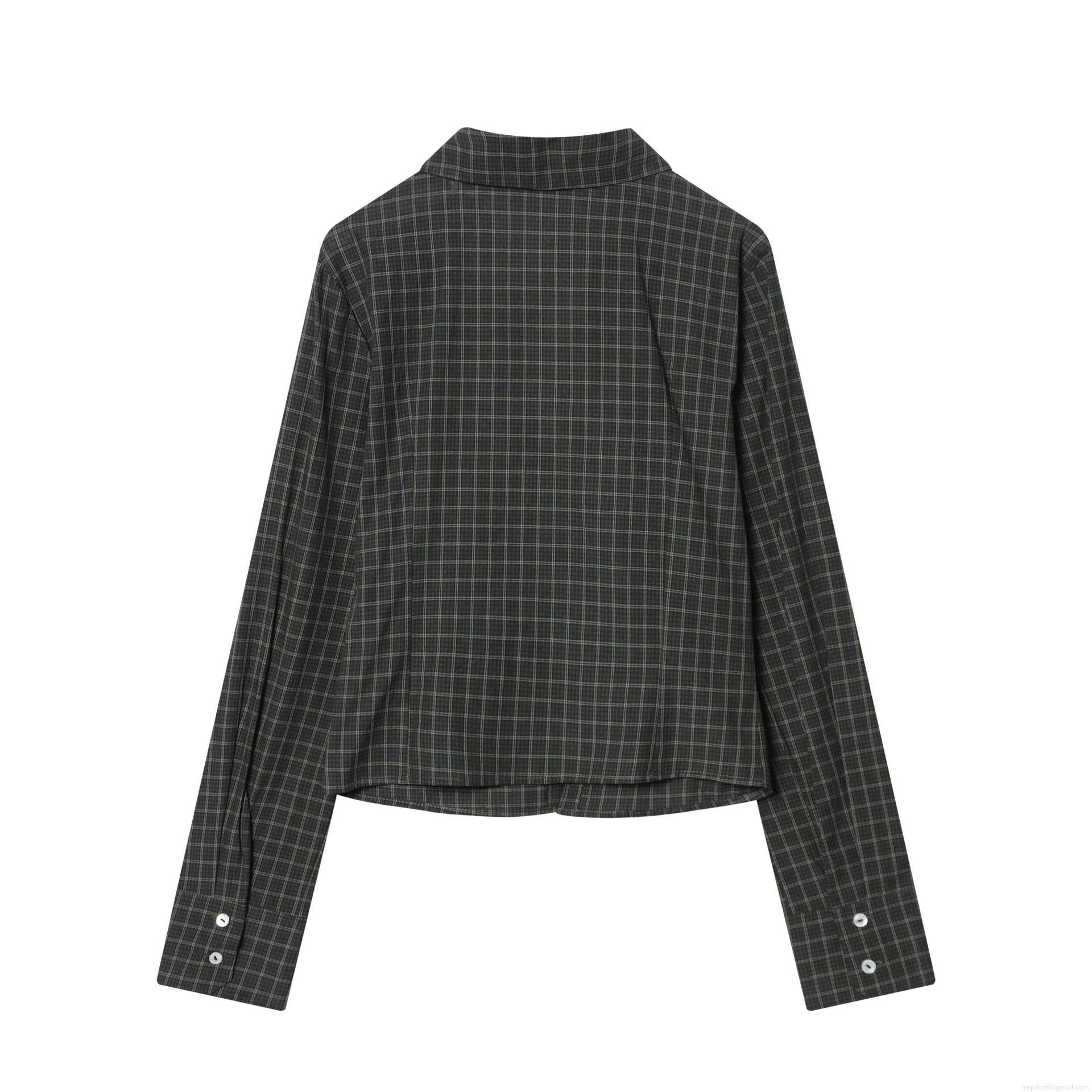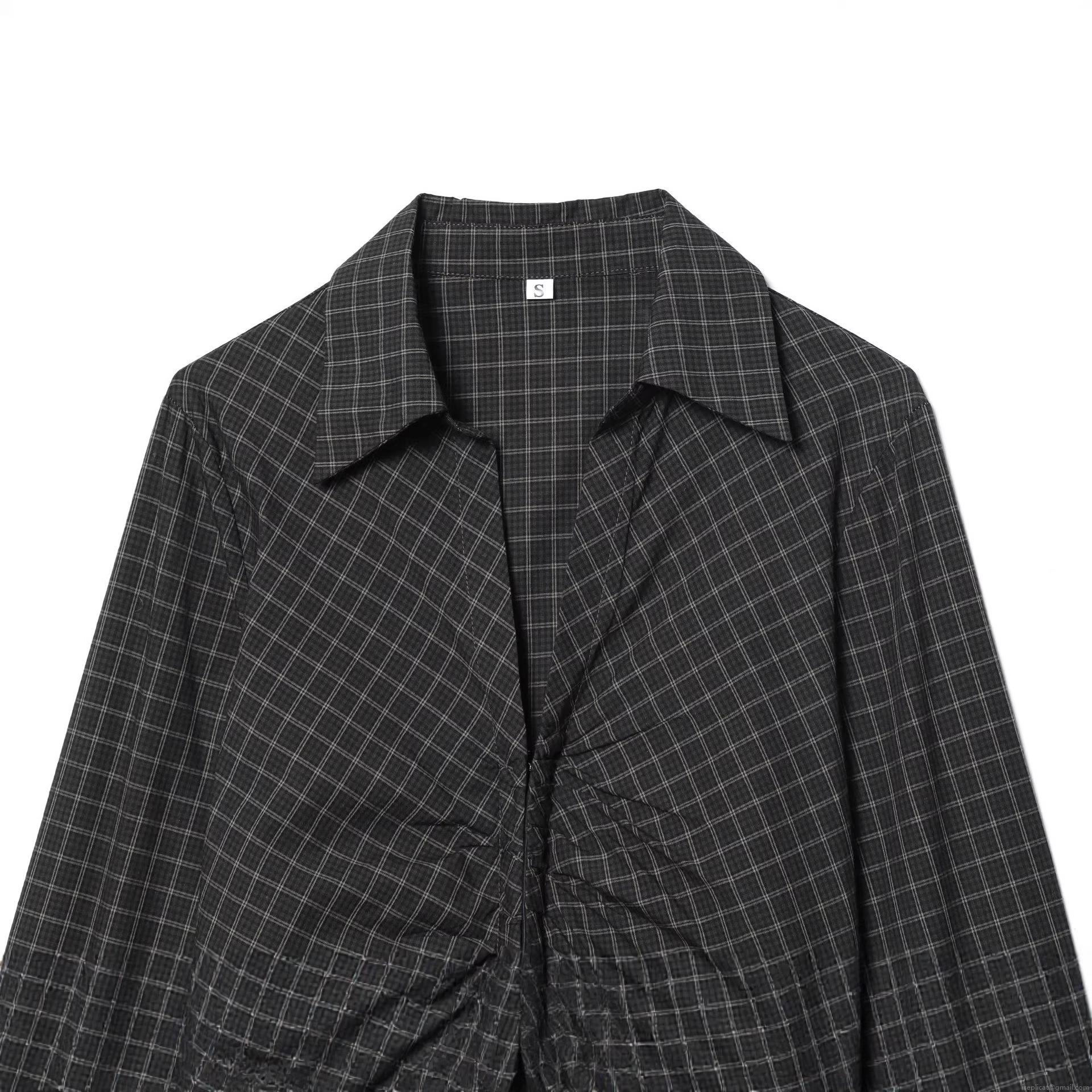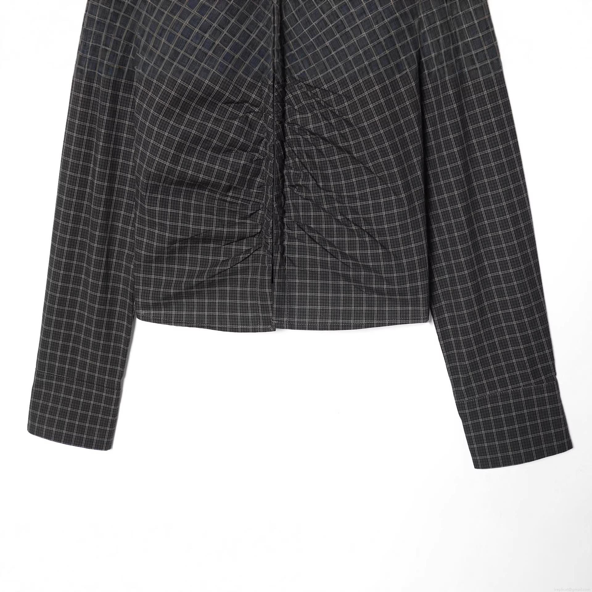 Women's Plaid Long Sleeve Shirt Ruched Front Slim Fit Polyester Blouse Elegant Grey Black Check Pattern Tops Casual Fashion Shirts For Women