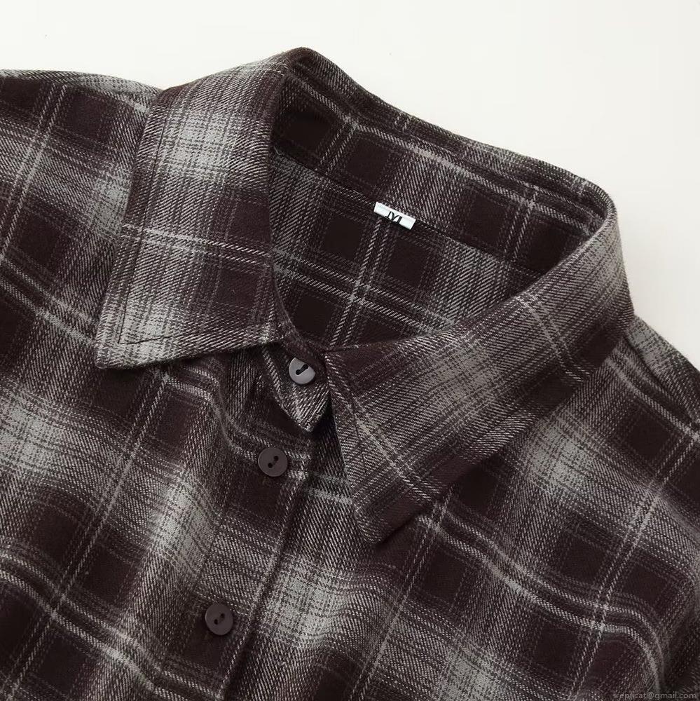 • Women's Plaid Shirt Long Sleeve Lapel Single Breasted Loose Fit Polyester Spandex Flannel Texture Blouse For Casual Daily Winter Autumn