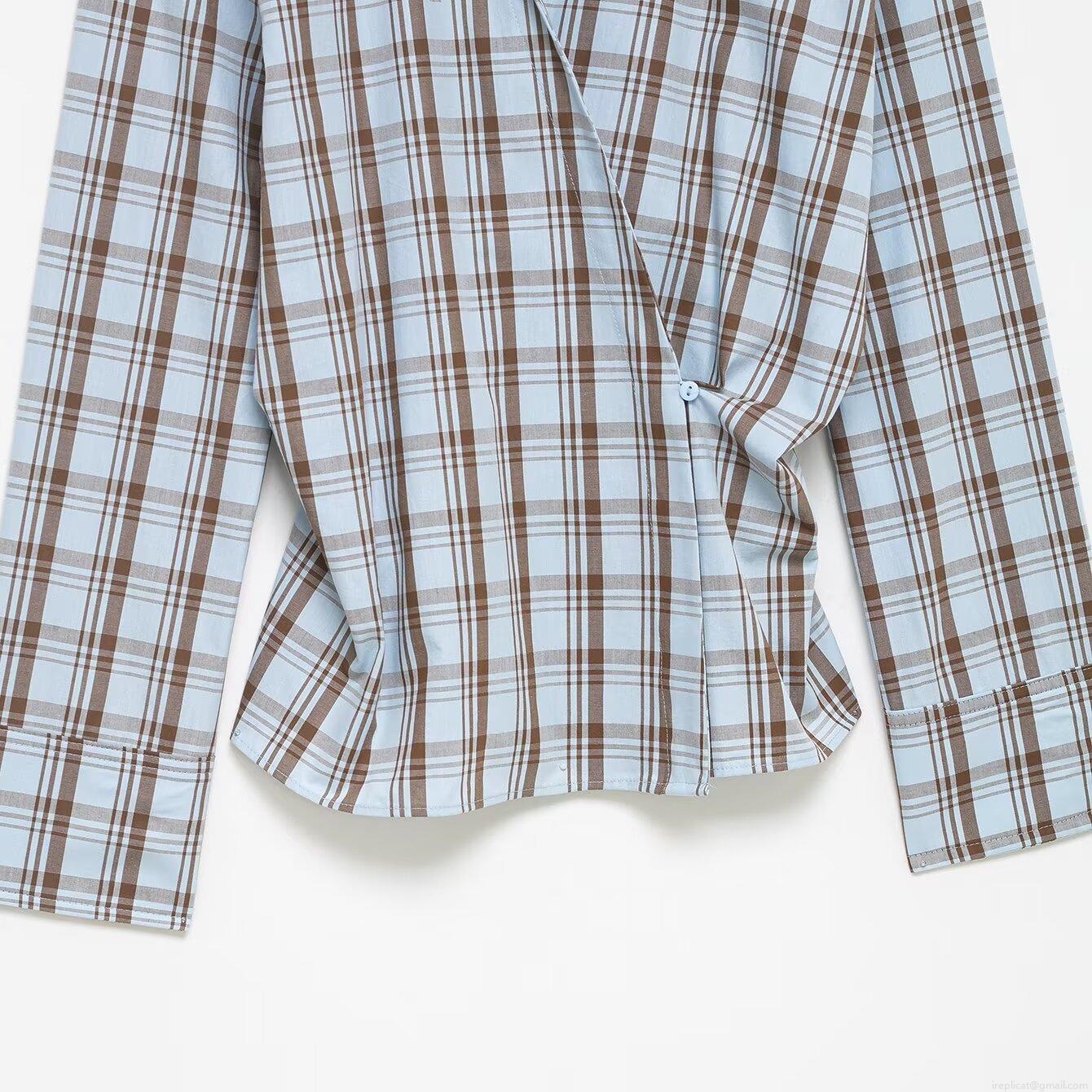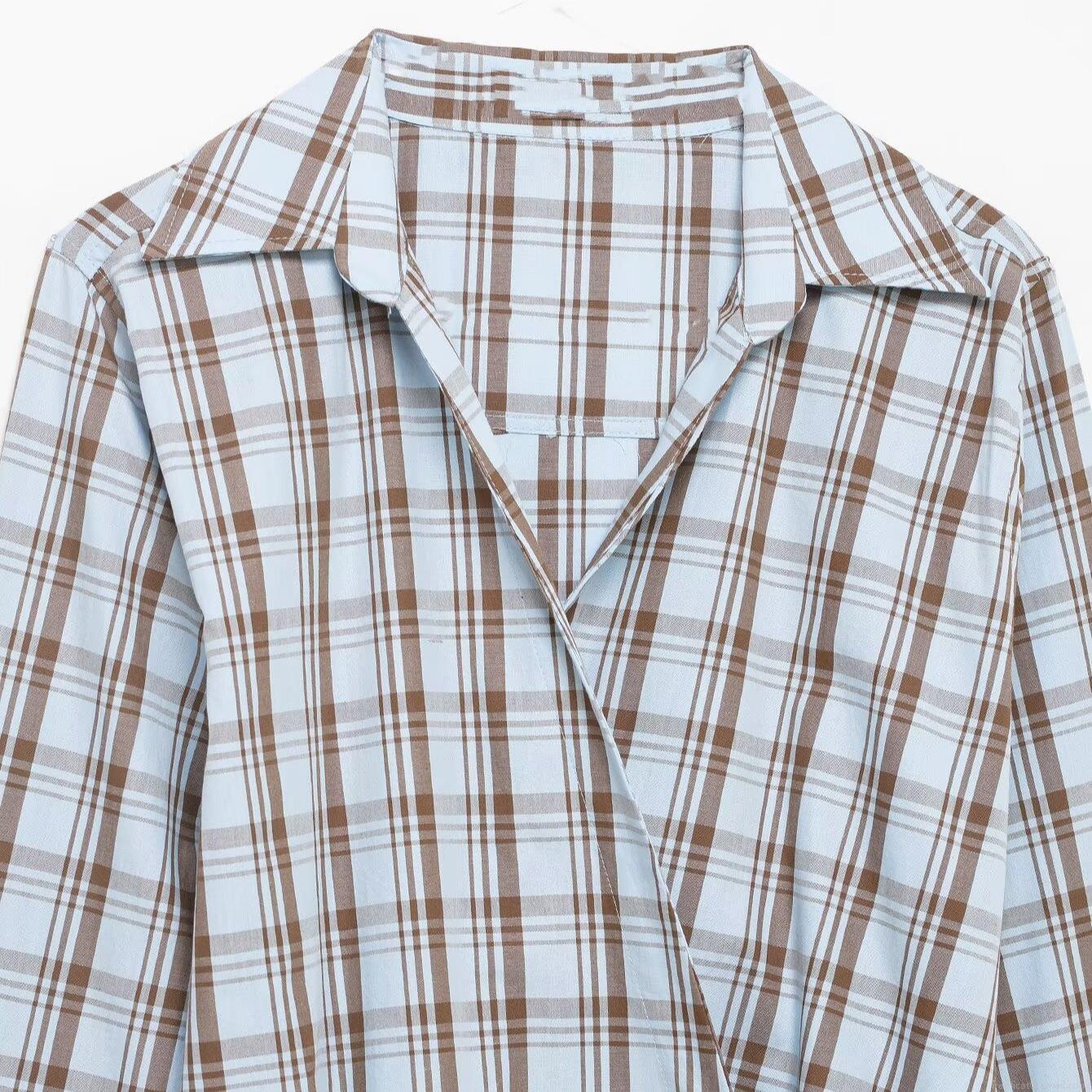 • Women's Plaid Wrap Blouse Long Sleeve V-Neck Asymmetrical Button Waist Detail Polyester Spandex Blend Daily Casual Office Fashion Sweet Top For Women