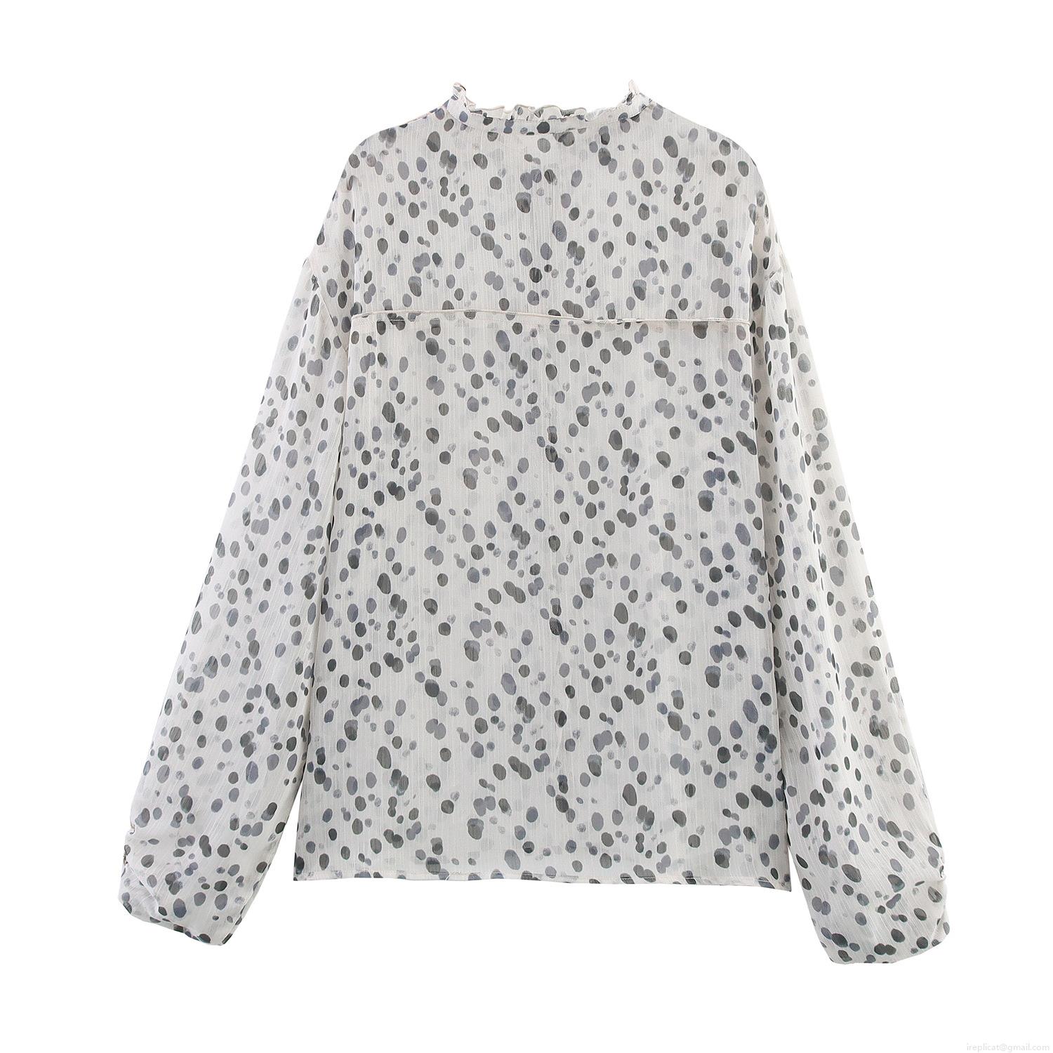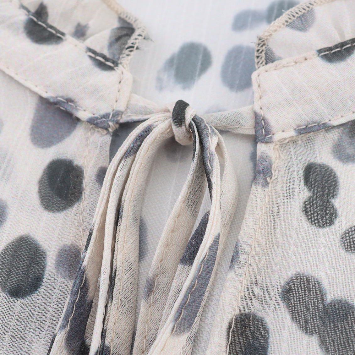 • Women's Polka Dot Chiffon Blouse Bohemian Ruffle Tie-Neck Lantern Sleeve Shirt Casual Loose Long Sleeve Top For Summer Vacation Holiday